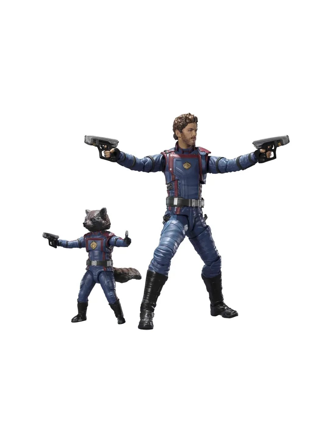 Tamashii Nations presenta la figura de Star Lord & Rocket Raccoon de Los Guardianes de la Galaxia dentro de la colección S.H. Figuarts. Las figuras miden 15 y 6 cm respectivamente. Ambos cuentan con blasters desmontables y las caras de ambos están pintadas con tecnología de coloración digital para un mayor realismo. Incluye 3x pares de manos para Star Lord, 2x pares de manos para Rocket, 2x pares de blasters.