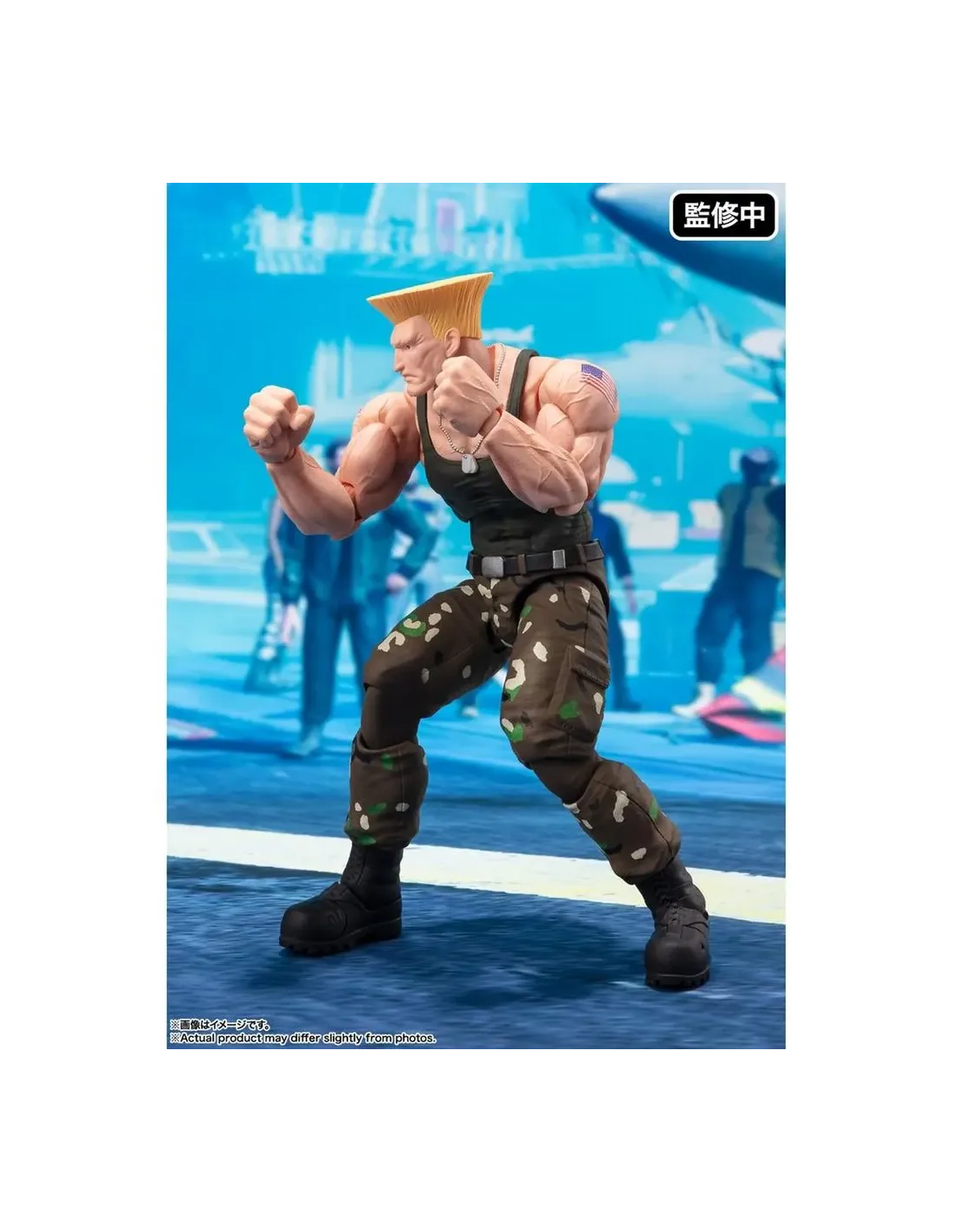 Tamashii Nations presenta, dentro de la coleccin S.H. Figuarts, la figura de Guile Outfit 2 Version. Mide 16 cm y est¡ basada en el personaje del juego "Street Fighter 6". Incluye x expresiones opcionales, 2x pares demanos, juego de efectos Sonic Boom y 1x hoja de fondo.