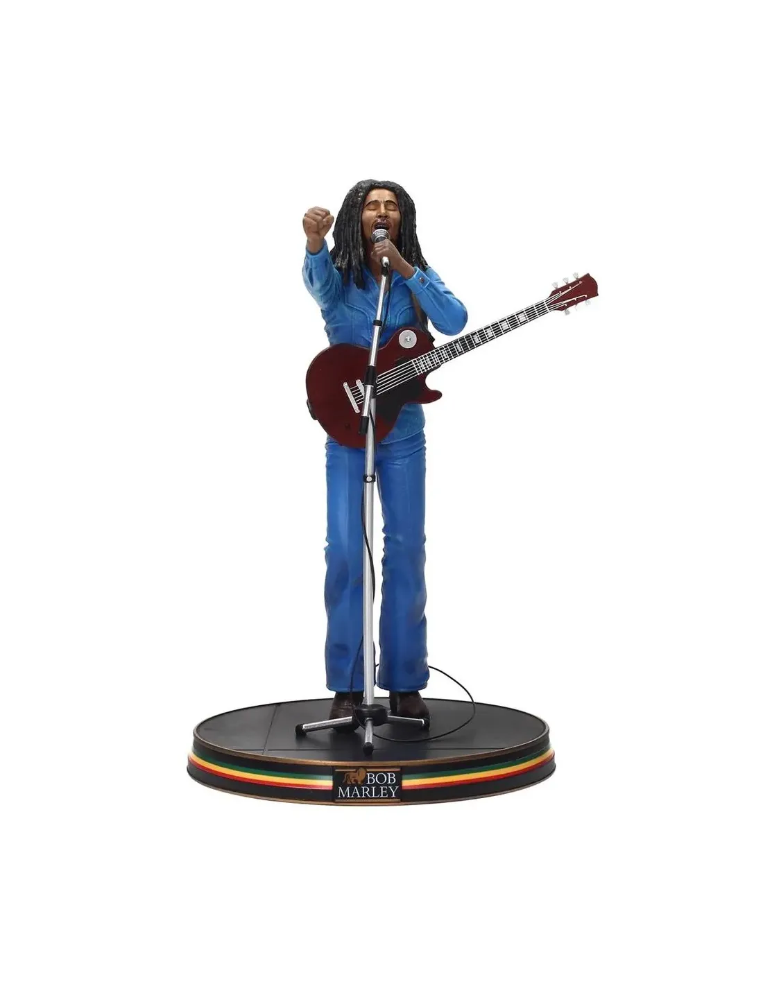 Características de la figura Bob Marley Concierto Rainbow'77 18 cmEsta figura de colección rinde homenaje al legendario **Bob Marley**, capturando un momento icónico de su actuación en el **teatro Rainbow de Londres en 1977**. Diseñada con gran nivel de detalle, es una pieza imprescindible tanto para **coleccionistas**, como para **fans de la música reggae** y admiradores del artista jamaicano. Su posado característico, su vestimenta fiel al original y la expresividad de su gesto transmiten el mensaje de **unidad y resistencia** que Bob Marley llevó al mundo entero.Diseño fiel al concierto histórico de 1977Esta figura representa a Bob Marley en plena acción, recreando con precisión su atuendo y actitud en el escenario durante uno de sus conciertos más recordados. Cada elemento está pensado para reflejar su carisma y energía.Altura aproximada: 18 cmVestimenta detallada: pantalón y camisa vaquera azulIncluye micrófono y guitarra, con postura de puño en altoPieza de colección para fans del reggae y la cultura musicalCon un acabado que transmite la fuerza simbólica del artista, esta figura no solo decora, sino que evoca el legado de uno de los máximos exponentes de la música y los derechos sociales del siglo XX.Figura de acción estática con base estableIdeal para exponer en vitrinas, estanterías o espacios temáticosRegalo perfecto para coleccionistas o admiradores del género reggaeOtras especificacionesInspirada en el concierto "Rainbow Theatre" (Londres, 1977)Diseño y acabados de alta calidadAltura indicada en el texto original: 20 cm (puede variar según fabricante)