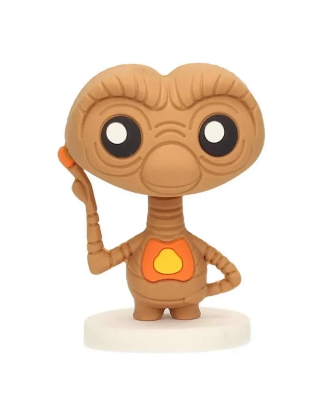 Características de la Figura de Goma Pokis E.T. con Corazón IluminadoLa **figura Pokis de E.T. con corazón iluminado** es una pieza imprescindible para fans de la película clásica de los 80. Diseñada con un estilo entrañable y detallado, esta miniatura rinde homenaje al querido extraterrestre, destacando sus rasgos más icónicos: su dedo brillante y el corazón encendido, símbolos de su conexión emocional con la humanidad.Diseño icónico en versión coleccionableEsta figura captura fielmente la expresión y postura de E.T. en uno de los momentos más emotivos de la película. Fabricada en **goma rígida y modelada en 3D**, presenta un acabado suave y una gran atención al detalle para un estilo "cuqui" pero reconocible al instante.Altura aproximada: 6 cmMaterial: goma rígidaModelado 3D con detalles del dedo brillante y corazón iluminadoIdeal para coleccionistas y nostálgicos del cinePerfecta para decorar estanterías, escritorios o vitrinas temáticas, esta figura es un regalo original para quienes crecieron con E.T. o para quienes desean iniciarse en el coleccionismo de figuras retro. Su diseño compacto y su estética entrañable la convierten en una adición destacada para cualquier colección.Diseño adorable con licencia inspirada en la películaFácil de exponer o transportarRegalo perfecto para fans del cine de los 80Otras especificacionesProducto: Figura Pokis E.T. con corazón iluminadoAltura: 6 cm aprox.Material: goma rígidaAcabado: Modelado 3D con detalles icónicos