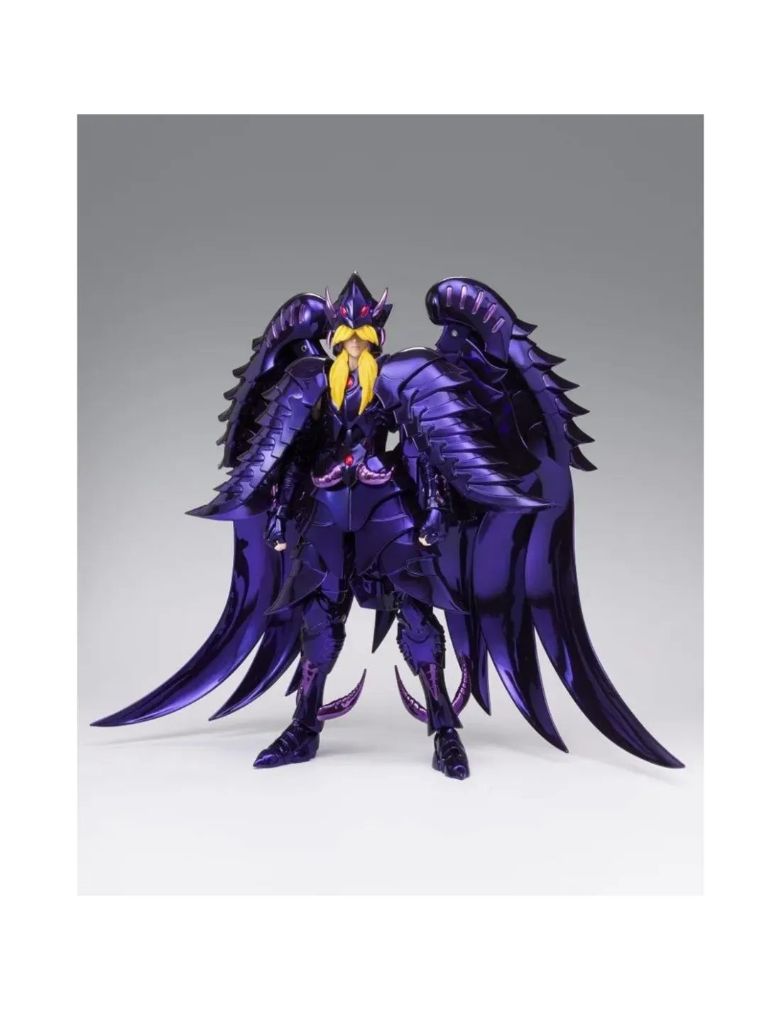 Bandai dentro de la serie Myth Cloth nos ofrece la figura de Minos de laarmadura del Grifo (Griffon), personaje clave que aparece en "Saint SeiyaHades: Chapter". Se trata de uno de los personajes más poderosos delejército de Hades y uno de los tres Jueces del Infierno. La calidad de estafigura es espectacular. Incluye piezas de la armadura, 5x set de manosintercambiables, 3x caras intercambiables, pelo intercambiable y armas.Además viene con piezas de armadura para recrear el objeto del Grifo.