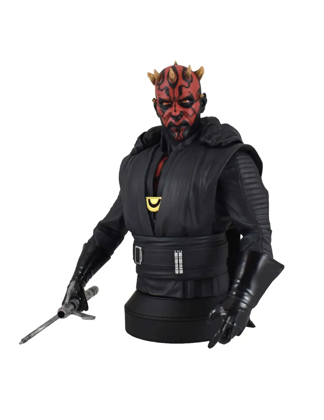 Diamond Select Toys presenta este mini busto de Darth Maul, basado en lapelícula "Solo: A Star Wars Story". Muestra al jefe del crimen del cartelCrimson Dawn, con su atuendo de la película sosteniendo su característicosable de luz de doble hoja. Se trata de un busto hecho en resina que mideunos 15 cm, Ha sido diseñado por Silva Bros, esculpido por RoccoTartamella y viene con un certificado de autenticidad numerado.
