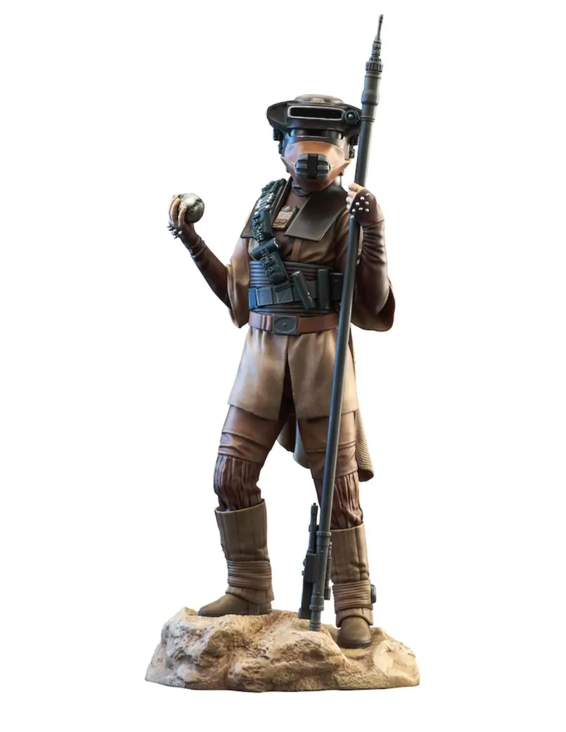 Diamond Select Toys presenta a la princesa Leia disfrazasda de cazarecompensas basada en su apariencia en "el Retorno del Jedi". La estatua mide 25 cm est realizada por Gentle Giant y est hecha en resina. Se trata de una edicin limitada a 3000 unidades, numeradas manualmente e incluye certificado de autenticidad.