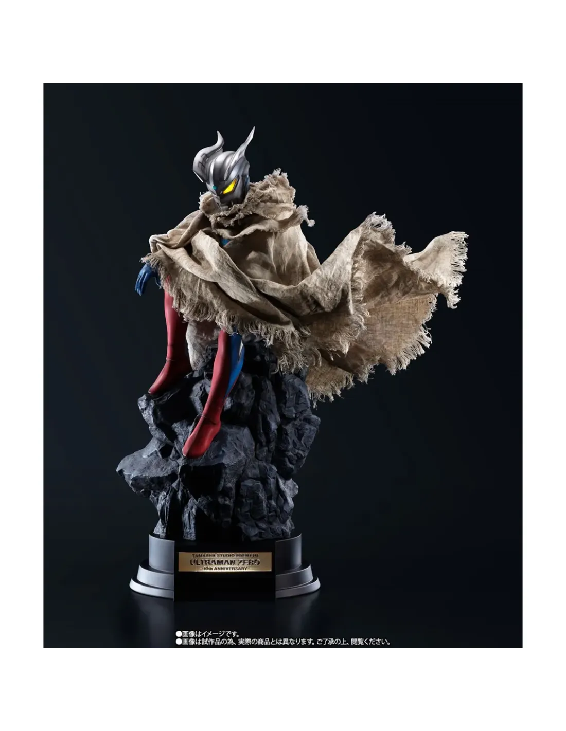 Tamashii Nations presenta la nueva figura de Ultraman Zero, parala colección de figuras Tamashii Studio Premium, enconmemoración del 10º aniversario. Incluye una figura de unos 61.5cm de alto basada en Ultraman y hecha con Polystone que le dasolidez. La figura cuenta con una abrumadora presencia y unaapariencia lujosa. Incluye luces LED internas en sus ojos, cabeza,temporizador de color y el Ultimate Bracelet. Incluye también unponcho, Pigmon, una roca pequeña y una tarjeta de serie.Requiere 3 pilas AA (no incluidas).