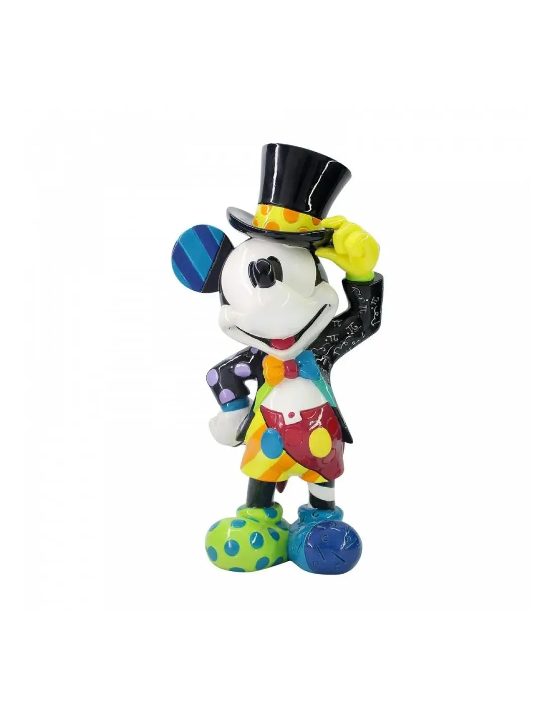 Características de la Figura Enesco Disney Mickey con Sombrero Estilo BrittoLa figura decorativa de Mickey Mouse por Enesco rinde homenaje al personaje más icónico de Disney, con un estilo visual renovado por el famoso artista Romero Britto. Esta pieza combina la nostalgia del Mickey clásico con un diseño moderno, vibrante y lleno de color, ideal para coleccionistas y amantes del arte pop. Perfecta para decorar cualquier espacio con un toque alegre y distintivo.Diseño exclusivo con el estilo de Romero BrittoRomero Britto aporta su característico estilo lleno de colores vivos, patrones geométricos y acabado pop art a esta figura de Mickey. El sombrero, los trazos y los contrastes transforman al personaje clásico en una pieza de arte contemporáneo, manteniendo su esencia original pero con una energía visual completamente nueva.Inspirado en el Mickey clásico de los dibujos animados de DisneyDiseño exclusivo con licencia oficial DisneyEstilo artístico de Romero Britto reconocido a nivel mundialAcabados artesanales y materiales de calidadEsta figura está fabricada en resina de alta calidad y acabada a mano, lo que garantiza detalles cuidados y una excelente durabilidad. Cada pieza es única gracias a su proceso artesanal de pintado, lo que la convierte en un excelente regalo o complemento para colecciones temáticas.Material: Resina resistentePintada completamente a manoDimensiones aproximadas: 20,5 cm (alto) x 13,9 cm (ancho) x 11,0 cm (profundidad)Ideal para coleccionistas y fans de DisneySi eres fan de Disney, del arte pop o simplemente buscas una figura decorativa con carácter, esta versión de Mickey con sombrero estilo Britto es una opción perfecta. Aporta color, originalidad y carisma a cualquier vitrina o estantería.Figura licenciada de colecciónDiseño alegre y llamativoGran valor decorativo y coleccionable