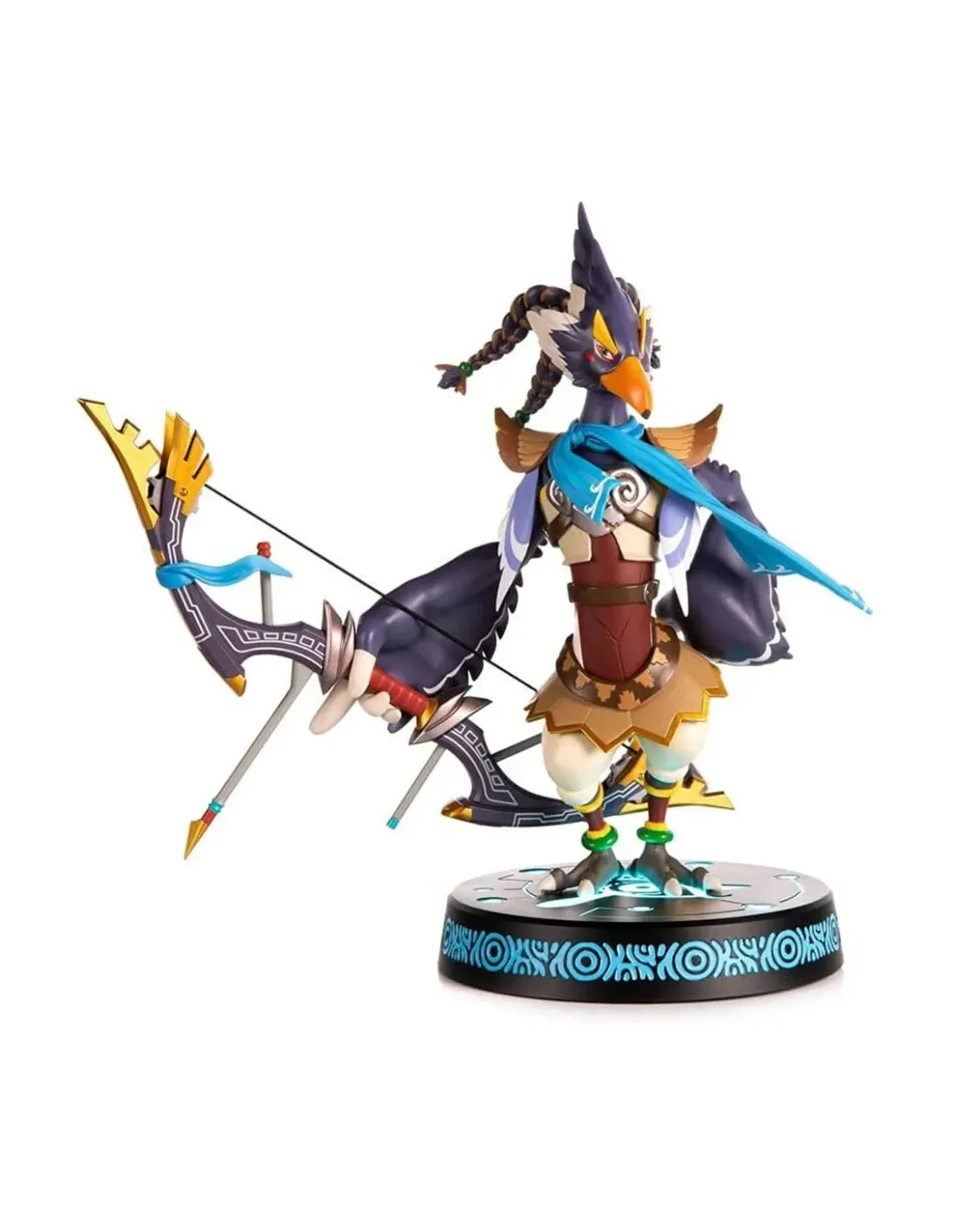 FIRST 4 FIGURES presenta la primera estatua de la serie "Gama Championsof Hyrule", basada en su apariencia en Legend of Zelda Breath of the Wild.La estatua de PVC altamente detallada de Revali esta inspirada en el arteoficial de The Legend of Zelda. Revali esta en esta pose estoica empuñandoel Gran Arco del Aguila, que tiene una cuerda de arco ligeramente elástica.Como uno de los cuatro campeones de Hyrule, se pone la tela azul que lesotorga la princesa Zelda como símbolo de que son, de hecho, Campeonesde Hyrule. El diseño de la base se basa en el símbolo del ojo de la tribuSheikah que aparece cuando activando la interfaz Sheikah Slate. La edicióncollector tiene función de luces LED. Se incluye una base muy detalladainspirada en el estilo artístico de The Legend of Zelda: Breath of the Wild yfolleto F4F con 500 puntos de recompensa F4F.