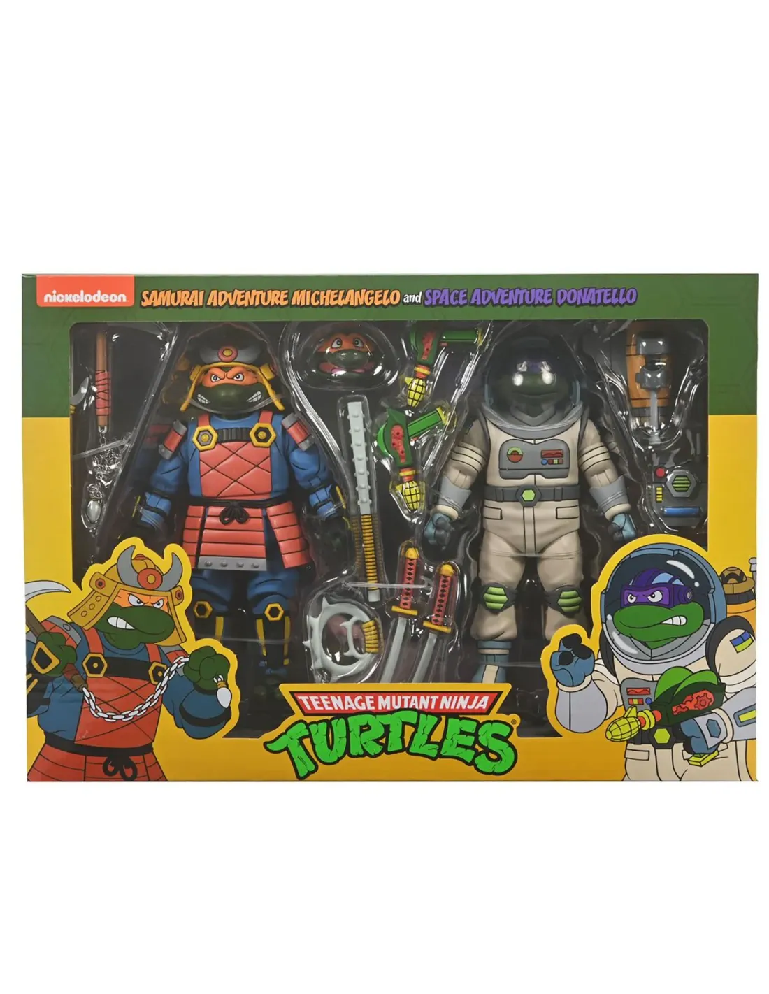 Figura neca teenage mutant ninja turtles space adventure donatello & samurai adventure michelangelo pack 2 scale action 18cm