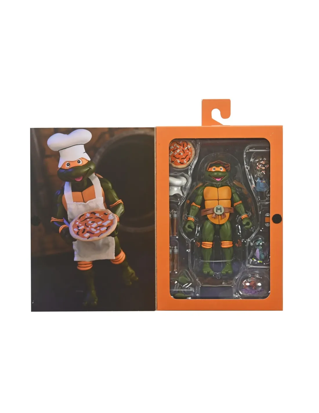 Características de la Ultimate Michelangelo VHS Scale Action Figure 18 cmNECA presenta, dentro de su colección Scale Action, la figura Ultimate Michelangelo, una pieza de coleccionismo basada fielmente en el personaje de la serie animada "Teenage Mutant Ninja Turtles". Con una altura aproximada de 18 cm, esta figura destaca por su nivel de detalle, articulación avanzada y una presentación especialmente cuidada, pensada para los fans más exigentes.Diseño inspirado en la serie animada clásicaLa figura reproduce con gran precisión el aspecto clásico de Michelangelo tal y como aparece en el cartoon original, respetando proporciones, colores y expresiones. Es una opción ideal tanto para exposición como para completar colecciones dedicadas a las Tortugas Ninja.Altura aproximada de 18 cmDiseño basado en la serie animada originalAcabados detallados y colores fieles al personajeAmplio surtido de accesorios incluidosEsta versión Ultimate incorpora una completa selección de accesorios intercambiables que permiten recrear distintas escenas icónicas del personaje y aumentar las opciones de personalización.1 gorro de cocinero1 delantal1 par de manos intercambiables1 pizza2 nunchakus1 cinta VHS1 mini dragón1 pez con su pecera1 compañero del Pizza ClubPresentación especial estilo VHS Pizza ClubLa figura se presenta en una caja con ventana de estilo VHS, inspirada en el Pizza Club, que refuerza el carácter nostálgico del producto. Este tipo de embalaje es ideal para coleccionistas que desean conservar la figura en su caja original.Caja con ventana y diseño VHSEdición orientada a coleccionismoIdeal para exposiciónEdición limitada para coleccionistasSe trata de una edición de unidades limitadas, lo que convierte a esta figura en una pieza especialmente atractiva para coleccionistas y fans de NECA y de las Tortugas Ninja.Unidades limitadasProducto oficial de colecciónRecomendado para fans y coleccionistas
