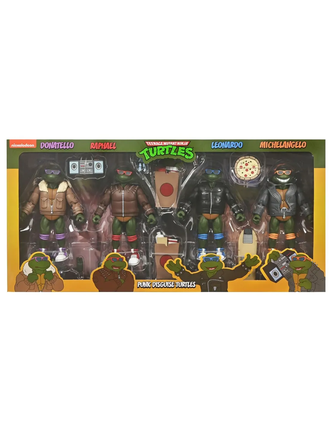 Características del Pack 4 Figuras Punk Turtles 18 cm - Teenage Mutant Ninja Turtles (NECA)El pack de figuras Punk Turtles de NECA es una edición especial para fans de la mítica serie Teenage Mutant Ninja Turtles. Esta colección reúne a Donatello, Raphael, Leonardo y Michelangelo en una versión punk nunca vista, ideal para coleccionistas que buscan figuras detalladas, articuladas y con gran personalidad.Diseño fiel al estilo cartoon con acabado punkEstas figuras están inspiradas directamente en el diseño animado de las Tortugas Ninja, con una estética rebelde que les da un giro original. Cada figura mide 18 cm de altura y mantiene un alto nivel de detalle en acabados, expresiones y vestuario, respetando el estilo visual de la serie clásica.4 figuras: Donatello, Raphael, Leonardo y MichelangeloDiseño punk basado en la serie animada originalAltura aproximada de 18 cm cada unaAccesorios intercambiables y alto nivel de articulaciónEl set incluye múltiples accesorios para recrear escenas icónicas o personalizar las figuras. Gracias a sus múltiples puntos de articulación, ofrecen una excelente posabilidad para exposición o juego.1 cabeza alternativa por figura (total: 4)4 pares de manos intercambiablesAccesorios adicionales: 2 bolsas de la compra, 1 arma, 1 radio, 1 mini robot, 1 pizza y 1 monopatínPresentación en caja con ventanaEdición limitada para coleccionistasEste set es una edición limitada, ideal para entusiastas del universo TMNT y coleccionistas de figuras NECA. La presentación en caja con ventana permite su exposición sin necesidad de abrir el empaque, conservando el producto en estado impecable.Perfecto para coleccionistas de NECA y fans de las TMNTIdeal para exposición gracias a su caja displayUnidades limitadasOtras especificacionesLínea: Scale ActionFabricante: NECALicencia oficial: Teenage Mutant Ninja Turtles