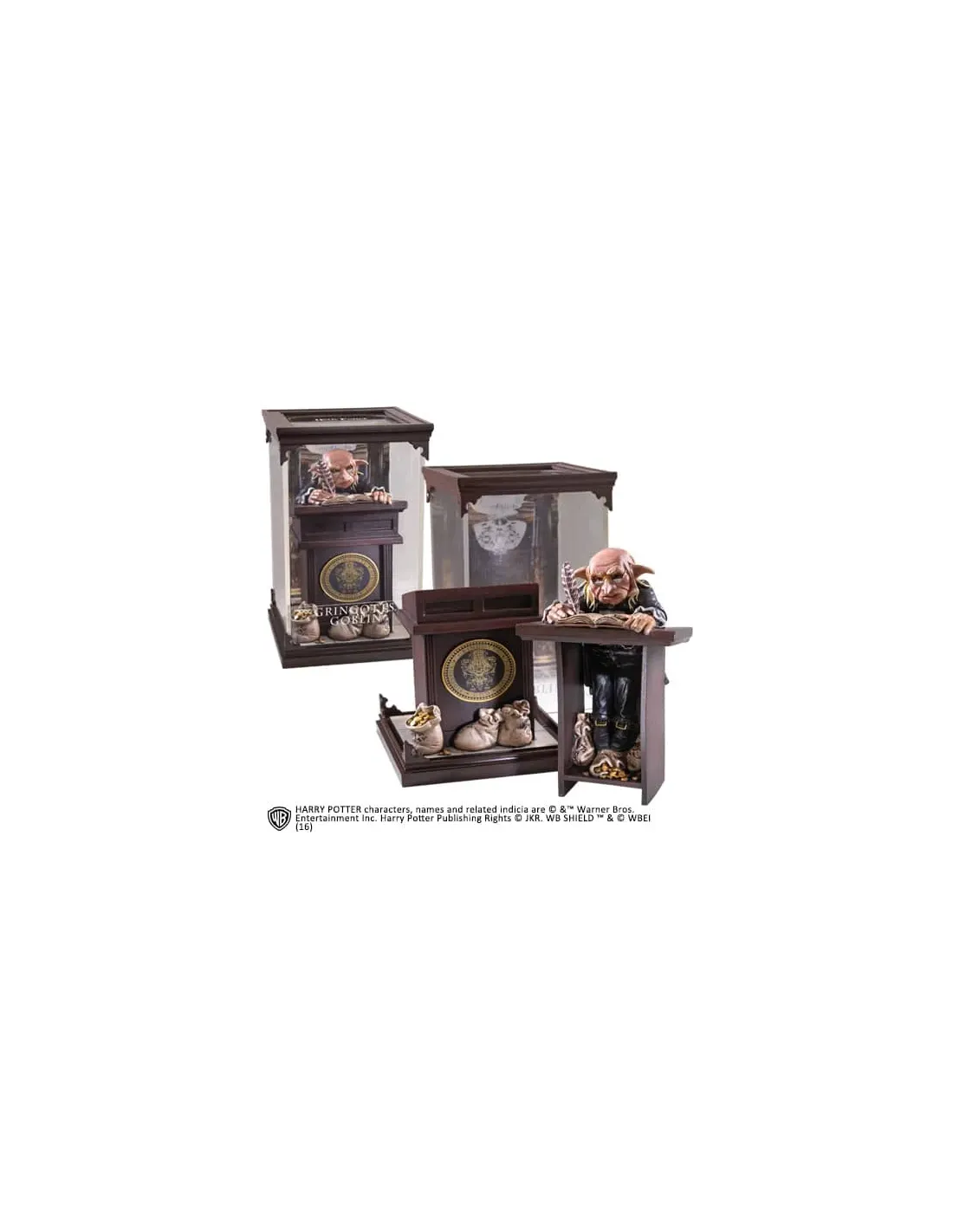 Noble Collection presenta Magical Creatures, una nueva línea de estatuasbasadas en los seres mágicos del Universo "Harry Potter" y de suspin-off "Fantastic Beast & Where to Find Them". En esta ocasión se tratade un goblin de Gringotts. Viene con un pequeño diorama que hace desoporte de la estatua. Mide unos 18,5 cm de alto.