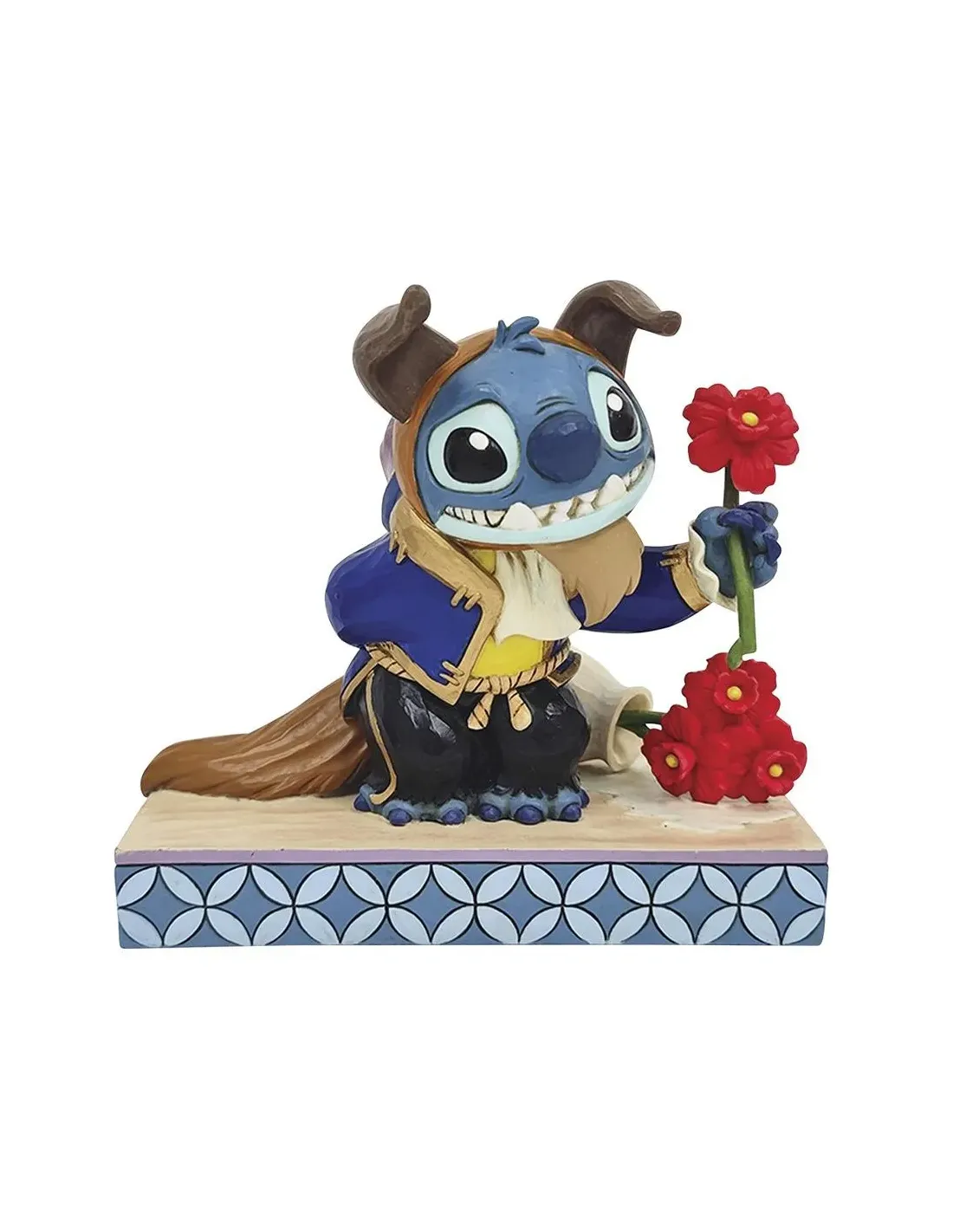 Características de la Figura Enesco Disney Stitch como la BestiaEsta figura coleccionable de la línea Disney Traditions, diseñada por el reconocido artista Jim Shore, captura a Stitch en una representación única y encantadora del clásico personaje de Disney. Inspirada en la película La Bella y la Bestia, esta pieza presenta a Stitch caracterizado como la Bestia, con su inconfundible atuendo azul real y una expresión adorable que le aporta carácter y simpatía a cualquier colección.Diseño exclusivo para coleccionistas DisneyIdeal para los amantes de Disney y seguidores de Jim Shore, esta figura combina el estilo artesanal característico del artista con un guiño a uno de los cuentos más queridos del universo Disney. Stitch sostiene una flor en actitud amistosa, convirtiendo esta pieza en un elemento emotivo y visualmente atractivo.Diseño original de Jim Shore para EnescoInspirada en "La Bella y la Bestia"Stitch disfrazado como la Bestia, con traje azul y rosa en manoFigura decorativa, no apta para niñosEste producto está destinado exclusivamente para adultos coleccionistas. No se trata de un juguete, sino de una figura decorativa elaborada con detalle para exposición en vitrinas, estanterías o espacios temáticos de colección.No apto para uso infantilDiseñado para exhibiciónIdeal como regalo para fans de Disney y StitchOtras especificacionesMaterial: Requiere confirmación (habitualmente resina pintada a mano)Dimensiones: No especificadasEdición: Requiere confirmación si es limitada o numerada
