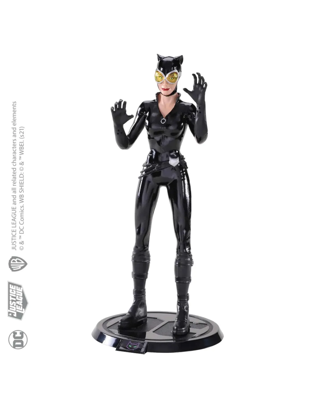Noble Collection presenta su nueva gama de figuras, Bendyfigs, con figurasflexibles de varios villanos y héroes del Universo DC, donde cada uno vienecon una base soporte con el logo del personaje en la parte frontal. En estecaso, se trata de una figura de unos 19 cm de alto del personajeCatwoman.