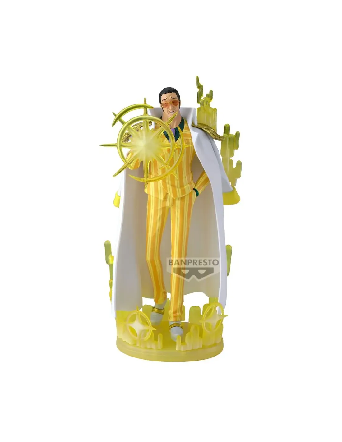 -DISEÑO Y DETALLESFigura de edición especial dedicada a Borsalino, almirante de la Marina en *One Piece* y usuario de la Logia de la luz. Forma parte de la colección THE SHUKKO LOGIA, destacando por su pose imponente y acabados dinámicos que reflejan el poder de su fruta del diablo.-DIMENSIONES Y PRESENTACIÓNFigura de tamaño medio con base incluida, ideal para exposición en vitrinas o junto a otras figuras de la línea. Presenta una postura de acción que transmite movimiento y autoridad.-MATERIAL Y CALIDADFabricada en PVC de alta calidad, con pintura detallada que resalta la indumentaria de Borsalino, su expresión facial y los efectos translúcidos que simulan su habilidad logia. Acabado premium para coleccionistas exigentes.-EDICIÓN ESPECIALVersión exclusiva dentro de la línea THE SHUKKO LOGIA, ideal para fans de *One Piece* que buscan piezas únicas y representativas de los personajes más poderosos del universo de la serie.