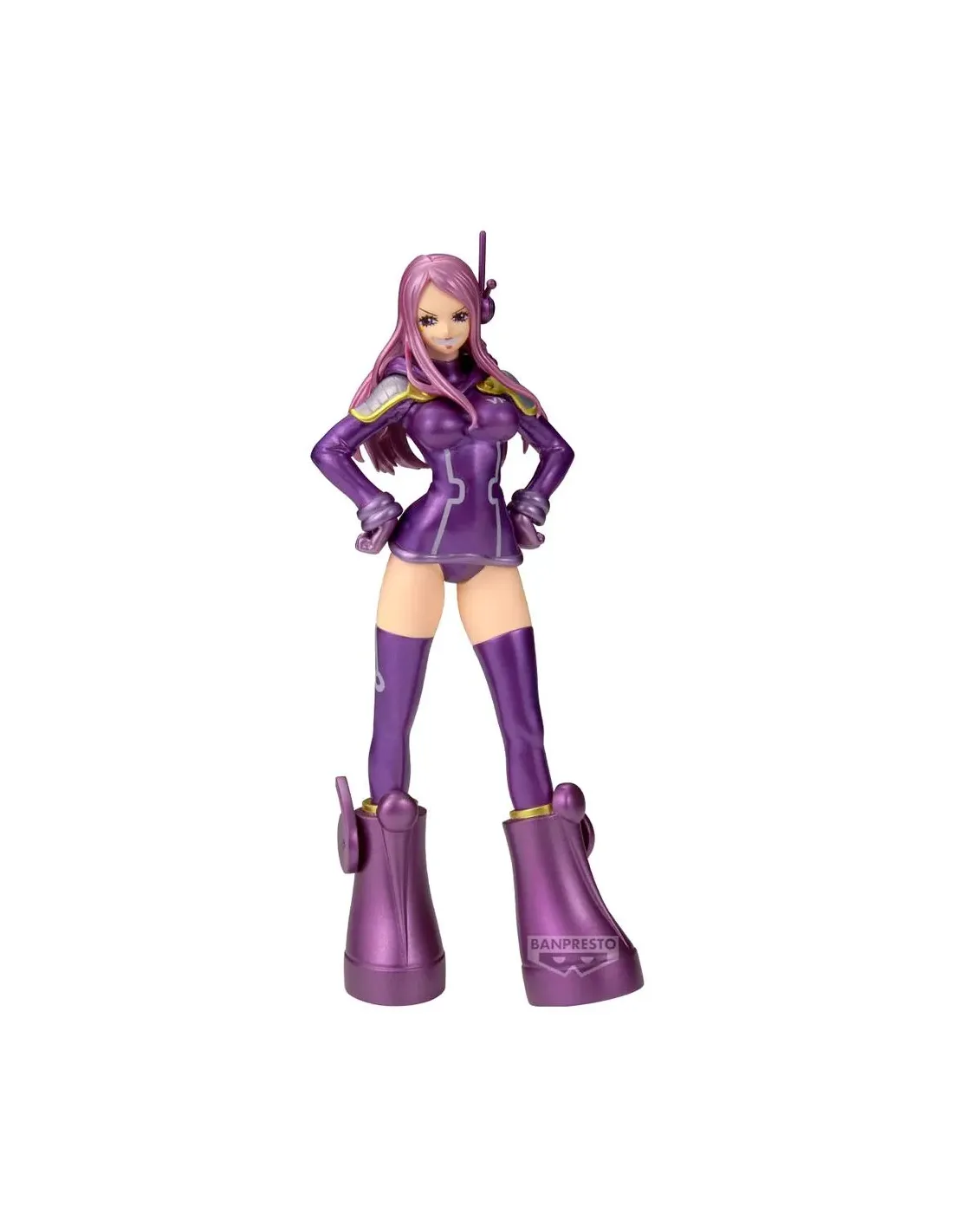 -FIGURAFigura de Jewelry Bonney perteneciente a la colección ONE PIECE DXF THE GRANDLINE SERIES, en su versión B del set junto a Monkey D. Luffy. Representa a la Supernova con su estilo rebelde y su actitud firme, destacando su papel clave en las sagas más recientes.-DISEÑO Y DETALLESEscultura detallada que muestra a Bonney con su característico cabello rosa, gorro, chaqueta abierta y pantalón ajustado. La pose segura y desafiante refleja su fuerte personalidad, mientras que los acabados resaltan tanto la estética punk como su fidelidad al diseño original del anime.-MATERIALESFabricada en PVC y ABS de alta calidad, con pintura precisa y duradera que respeta los colores y matices del personaje.-DIMENSIONESAltura aproximada: 17 cm. Perfecta para exhibir junto a la figura de Monkey D. Luffy o como parte de una colección de Supernovas y personajes femeninos de One Piece.-IDEAL PARAFans de One Piece, coleccionistas de figuras DXF y seguidores de Jewelry Bonney. Una figura imprescindible para quienes valoran a los personajes más libres, poderosos e impredecibles del universo pirata.