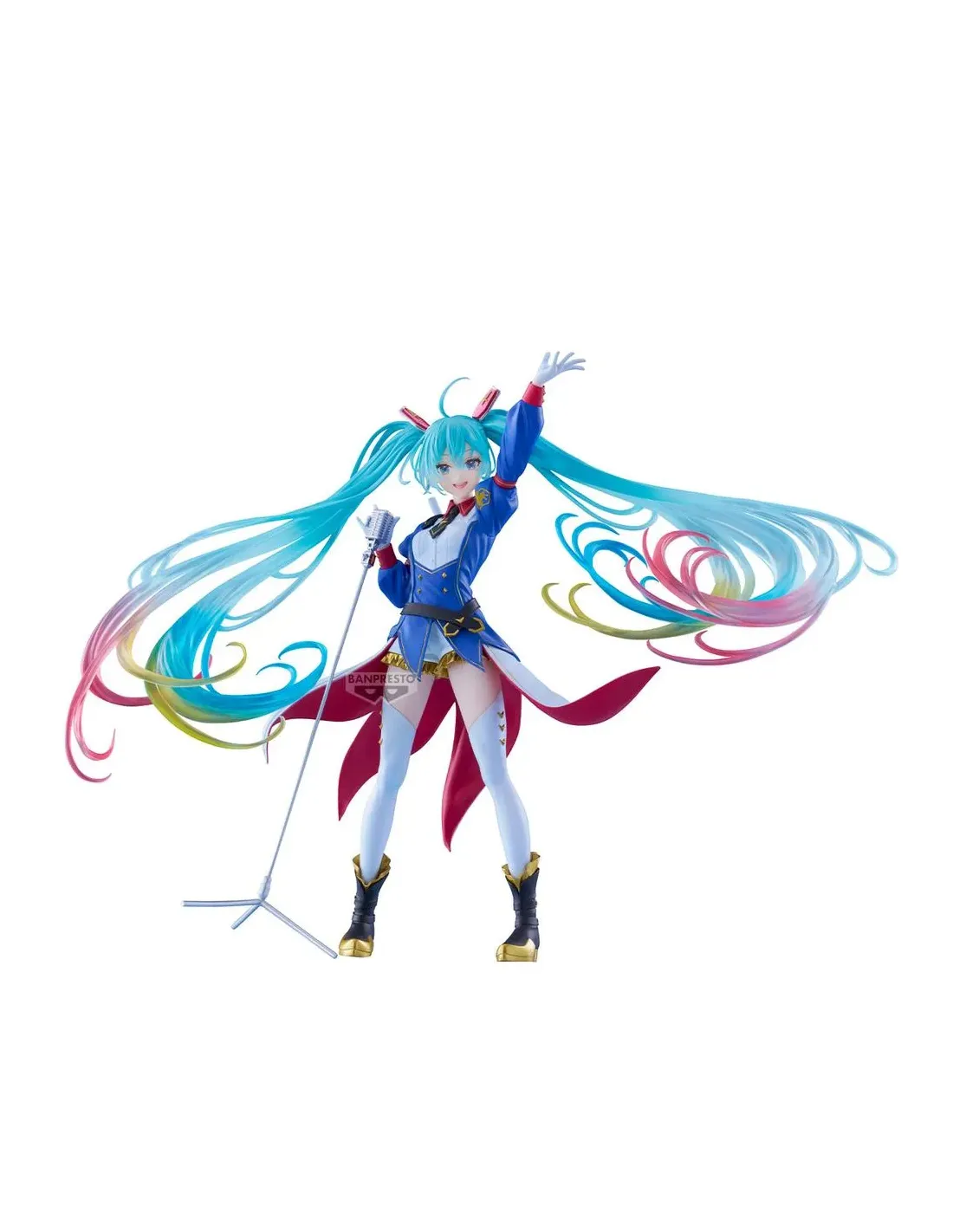 -DISEÑO Y DIMENSIONESFigura de edición especial que celebra la colaboración entre Gundam (45.º aniversario) y Hatsune Miku. Presenta a Miku con un atuendo inspirado en el universo Gundam, fusionando elementos icónicos de ambos mundos como el traje tipo piloto, detalles mecánicos y una paleta de colores que mezcla el estilo futurista de los Mobile Suits con la estética vocaloid.-MATERIALFabricada en PVC de alta calidad con acabados meticulosos y pintura de gran precisión. El diseño incluye texturas metálicas, detalles en el cabello y una base temática que asegura estabilidad para su exposición.-USO Y FUNCIONALIDADFigura decorativa de colección ideal para exhibición en vitrinas o escritorios. Pensada para fans de Gundam y Hatsune Miku que valoran piezas exclusivas y colaborativas. No articulada. No contiene componentes electrónicos.-EDAD RECOMENDADARecomendada para mayores de 15 años. Producto destinado a coleccionismo, no apto como juguete infantil.-CUIDADOSLimpiar con un paño seco y suave. Evitar el contacto con agua o la exposición directa al sol para preservar los colores y acabados.-LICENCIA Y COLECCIÓNProducto oficial licenciado por Banpresto, conmemorativo del 45.º aniversario de Gundam. Forma parte de la serie ?EVOLVE-GUNDAM Collaboration?, que presenta fusiones creativas entre la franquicia Gundam y otros íconos culturales como Hatsune Miku.