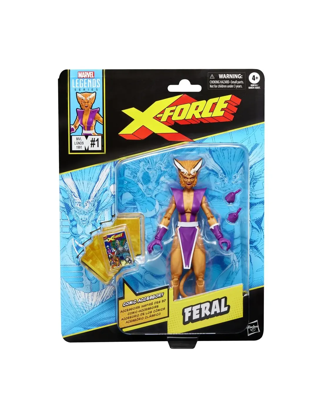 Características de la Figura Hasbro Marvel Legends Series X-Force FeralLa figura articulada Hasbro Marvel Legends Series Feral rinde homenaje a uno de los personajes más intensos del universo mutante. Diseñada para fans y coleccionistas, esta representación fiel de Feral, miembro de X-Force, está inspirada en su aparición en los cómics de X-Force #1 (1991). Ideal para exhibir, personalizar o recrear escenas icónicas de los cómics, forma parte de la prestigiosa línea Marvel Legends de Hasbro.Diseño premium con alto nivel de detalleEsta figura a escala de 15 cm destaca por su acabado detallado y articulaciones completas, que permiten una gran variedad de poses dinámicas. La expresión del rostro, el esculpido del traje y los detalles del cuerpo capturan fielmente el estilo visual de los cómics clásicos.Escala de 15 cm, ideal para coleccionistasInspirada en el cómic X-Force #1 (1991)Diseño realista con acabados de alta calidadAccesorios incluidos y experiencia de colecciónLa figura incluye varios accesorios para enriquecer la experiencia de posado y exposición, incluyendo 2 manos alternativas y un accesorio con la portada de cómic de X-Force #1 en miniatura. Esta edición permite recrear escenas clásicas o integrarla en dioramas junto a otros personajes de Marvel Legends.3 accesorios: 2 manos intercambiables y portada de cómicCompatible con otras figuras de la línea Marvel LegendsIdeal para exponer en vitrinas o estanteríasSeguridad y recomendacionesProducto recomendado para niños a partir de 4 años. No apto para menores de 3 años debido a piezas pequeñas que pueden provocar asfixia.Edad recomendada: 4+Incluye figura y 3 piezasAdvertencia: Peligro de asfixia por piezas pequeñasOtras especificacionesLicencia oficial MarvelFabricante: HasbroAño de lanzamiento: 2025