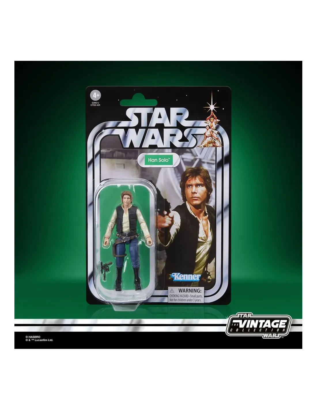 Características de la Figura Hasbro Star Wars Han Solo Vintage CollectionCelebra el universo de Star Wars con esta **figura coleccionable de Han Solo**, parte de la prestigiosa **Vintage Collection de Hasbro**. Diseñada con un alto nivel de detalle y basada en su aparición en "Una nueva esperanza", esta figura es una pieza imprescindible para fans y coleccionistas que buscan revivir los momentos icónicos de la saga.Diseño clásico con detalles premiumLa figura reproduce fielmente la estética original de Han Solo, incluyendo su vestimenta y expresión clásica, con un nivel de acabado que recuerda a los productos vintage pero con calidad moderna. Su **embalaje retro** está inspirado en los diseños de las figuras originales de los años 70 y 80.Basada en Star Wars: Una nueva esperanzaAltura aproximada: 9,5 cmIncluye accesorioPerfecta para coleccionistas y fans de todas las edadesFabricada con materiales resistentes y acabados realistas, esta figura está pensada tanto para exposición como para el juego. Es parte de una colección que incluye otros personajes y vehículos (se venden por separado).Decoración de calidad coleccionistaEdad recomendada: a partir de 4 añosCompatible con otras figuras y sets Vintage CollectionSeguridad y advertenciasEste producto contiene piezas pequeñas que podrían representar un riesgo para niños menores de 3 años.Advertencia: Peligro de asfixiaNo apto para menores de 3 añosOtras especificacionesIncluye: Figura y accesorioEscala aproximada: 9,5 cm