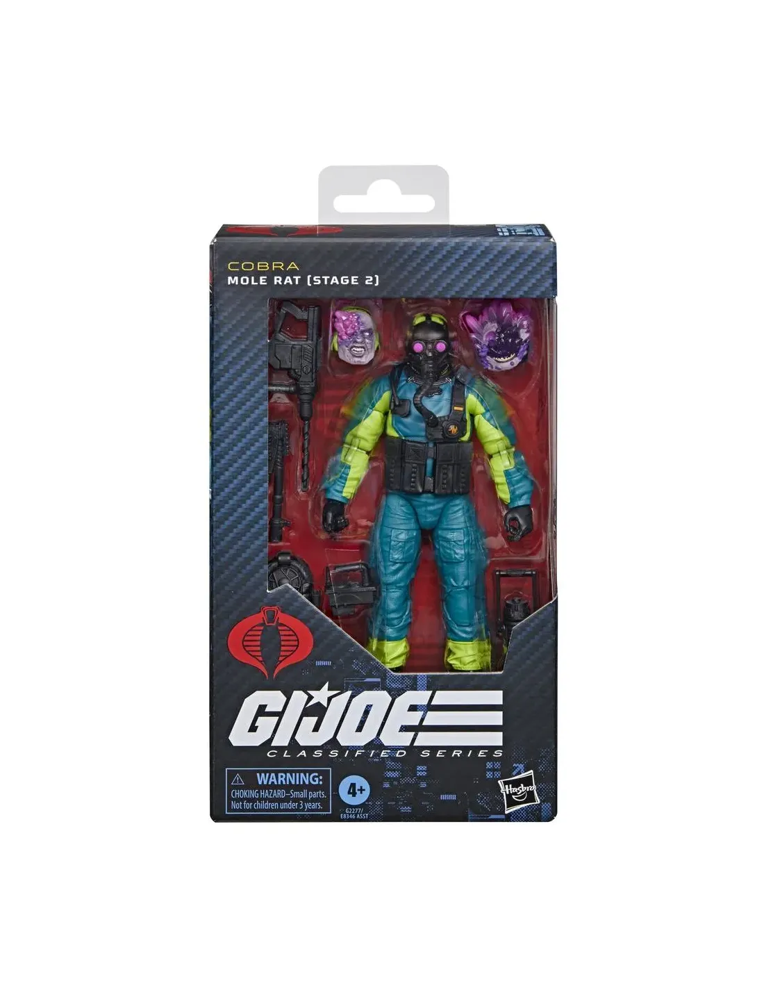Características de la Figura Hasbro G.I. Joe Classified Series Mole Rat (Stage 2)La figura **G.I. Joe Classified Series Mole Rat (Stage 2)** representa a uno de los soldados más impactantes del universo Cobra, infectado por la energía oscura conocida como **energón oscuro**. Diseñada para los fans de la franquicia y coleccionistas exigentes, esta figura de 15 cm destaca por su **nivel de detalle, posabilidad y accesorios intercambiables**. Ideal tanto para exhibir como para recrear escenas de acción.Diseño detallado y posabilidad totalEsta figura está equipada con **múltiples puntos de articulación**, lo que permite colocarla en una gran variedad de poses dinámicas. El acabado estético reproduce con fidelidad el aspecto mutado de los Mole Rats en su Fase 2, con detalles que reflejan la corrupción causada por el energón oscuro.Altura aproximada: 15 cmDiseño premium inspirado en el universo G.I. JoeArticulaciones flexibles para poses realistasAccesorios intercambiables para mayor personalizaciónLa figura incluye **8 accesorios inspirados en el personaje**, que permiten configurar al Mole Rat en diferentes etapas de su mutación. Esto brinda **mayor valor coleccionable y opciones creativas de exhibición**.2 cabezas alternativas con mutaciónMochila y escáner de energón oscuroContenedor de energón, taladro con broca y armaIdeal para fans y coleccionistasLos **Mole Rats** representan a la carne de cañón científica de Cobra, encargados de extraer el energón oscuro para la maquinaria bélica de la organización. Su transformación progresiva es un guiño a las historias más oscuras del universo G.I. Joe, haciendo de esta figura una **pieza clave para cualquier colección**.Incluye figura + 8 accesoriosA partir de 4 añosNo apto para menores de 3 años: contiene piezas pequeñasOtras especificacionesMarca: HasbroLínea: G.I. Joe Classified SeriesEscala: 15 cmLicencia oficial de Hasbro, Inc.