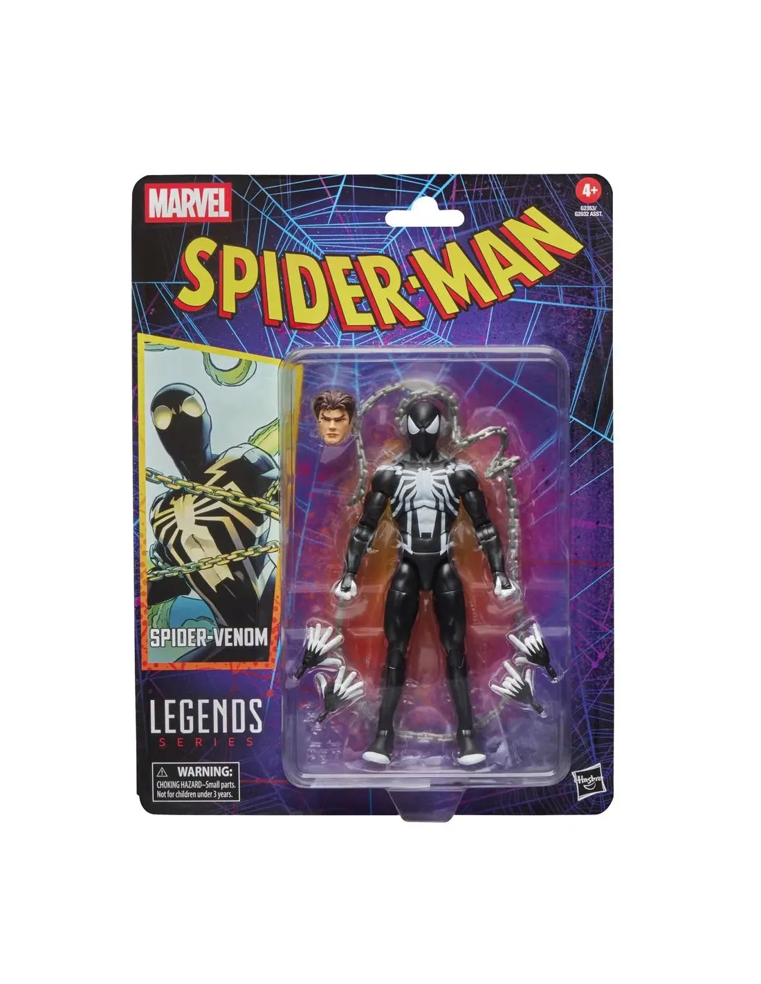 Características de la Figura Hasbro Marvel Legends Series Spider-Man Spider-VenomLa figura coleccionable **Spider-Venom** de la línea **Marvel Legends Series** de Hasbro combina la estética de dos icónicos personajes del universo Marvel: Spider-Man y Venom. Diseñada para fans y coleccionistas, esta figura de acción de **15 cm de altura** destaca por su **diseño premium, alto nivel de detalle** y amplias posibilidades de posado. Ideal tanto para exhibir en estanterías como para recrear escenas inspiradas en los cómics clásicos.Diseño articulado y fiel a los cómicsLa figura representa a Spider-Venom con un acabado realista que homenajea el estilo visual de los cómics de Marvel. Está equipada con **múltiples puntos de articulación** en cabeza, brazos y piernas, lo que permite colocarla en diversas poses dinámicas.Altura aproximada: 15 cm (escala de 6 pulgadas)Inspirada en los personajes de Spider-Man y VenomArticulaciones completas para mayor posabilidadIncluye accesorios para personalizar la figuraEste set incluye **6 accesorios intercambiables** que permiten adaptar la figura a distintas escenas de acción o exhibición. Incorpora manos alternativas, cabeza adicional y una cadena, ofreciendo más opciones de expresividad y juego.2 manos lanzando telarañas2 manos trepamuros1 cabeza alternativa1 cadena decorativaProducto de colección para fans de MarvelLa línea Marvel Legends está dirigida a coleccionistas y entusiastas de los superhéroes. Esta figura es perfecta para complementar una colección centrada en el universo Spider-Man o para regalar a fans del cómic.Incluye figura y 6 accesoriosApto para mayores de 4 añosNo apto para menores de 3 años (contiene piezas pequeñas)Otras especificacionesLínea: Hasbro Marvel Legends SeriesPersonaje: Spider-VenomTipo de producto: Figura articulada coleccionableMaterial: Plástico de alta calidadEdad recomendada: +4 años