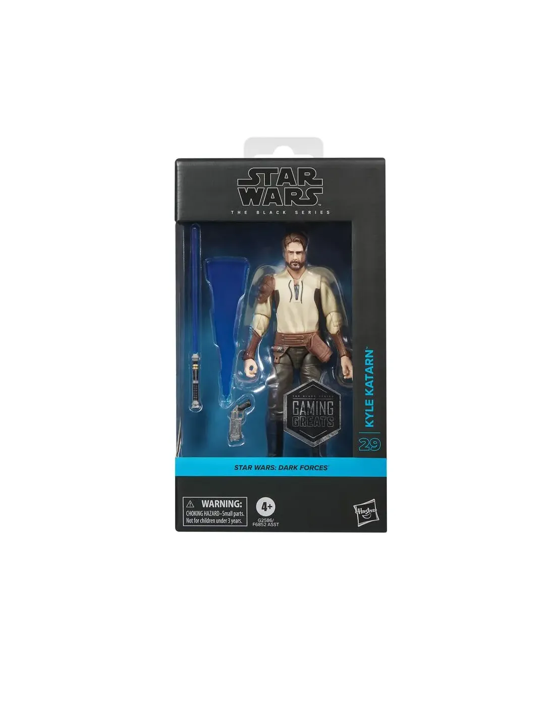 Características de la Figura Hasbro Star Wars: Dark Forces The Black Series Kyle KatarnLa figura de acción **Kyle Katarn de la línea Star Wars The Black Series** está pensada para los fans que buscan **precisión, detalle y fidelidad** al universo de Star Wars. Basada en el icónico personaje del videojuego *Star Wars: Dark Forces*, esta figura coleccionable permite revivir escenas clave de la saga expandida y enriquecer cualquier colección galáctica.Diseño fiel al personaje y escala detalladaEsta figura ha sido diseñada para reproducir con exactitud la apariencia de **Kyle Katarn**, uno de los protagonistas más queridos del universo expandido. Su escala de 15 cm permite una gran nivel de detalle tanto en el rostro como en el vestuario, ideal para exponer o recrear escenas clásicas.Altura aproximada: 15 cmBasada en el videojuego *Star Wars: Dark Forces*Escultura detallada con acabados realistasAccesorios incluidos y calidad de colecciónLa figura incluye **3 accesorios**, ideales para personalizar poses y enriquecer la experiencia de juego o exposición. Forma parte de la reconocida línea **The Black Series**, pensada para coleccionistas exigentes por su alta calidad y fidelidad visual.Incluye figura de Kyle Katarn + 3 accesoriosMateriales resistentes y artículos articuladosIdeal para fans, coleccionistas o como regalo temáticoSeguridad y edad recomendadaEste producto está recomendado para niños a partir de **4 años**. Incluye piezas pequeñas, por lo que se debe evitar su uso por menores de 3 años sin supervisión.A partir de 4 añosAdvertencia: peligro de asfixia por piezas pequeñasNo apto para menores de 3 añosOtras especificacionesLínea: Star Wars The Black SeriesFabricante: HasbroInspirado en: *Star Wars: Dark Forces*