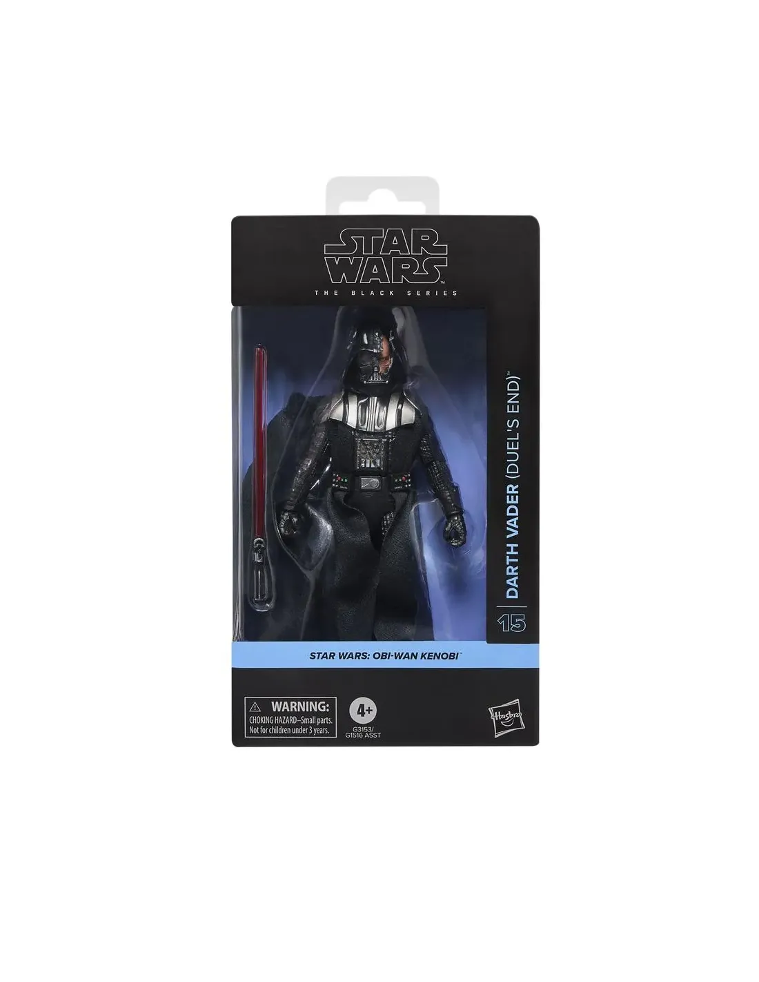 Características de la Figura Hasbro Star Wars The Black Series Darth Vader (Duel's End)La figura Darth Vader de Star Wars The Black Series está inspirada en la serie Obi-Wan Kenobi de Disney+. Diseñada para fans y coleccionistas, esta figura a escala de 15 cm permite recrear la icónica batalla final entre Darth Vader y su antiguo maestro. Ideal para exhibir o coleccionar, es un regalo perfecto para mayores de 4 años.Diseño y articulación premiumEsta figura de Darth Vader combina detalles realistas y diseño de alta calidad con múltiples puntos de articulación, permitiendo posar al personaje de manera dinámica. Su capa de tela y la escultura fiel a la serie aseguran que cada detalle represente con precisión al legendario Sith.Escala: 15 cmMúltiples puntos de articulaciónCapa de tela y escultura detallada inspirada en la serieAccesorios auténticos de la serieIncluye el sable de luz rojo de Darth Vader para recrear escenas icónicas o inventar nuevas aventuras dentro de la galaxia de Star Wars.Sable de luz rojo inspirado en la seriePoses dinámicas posibles gracias a la articulaciónCompatible con otras figuras de 15 cm de la línea Black Series (se venden por separado)Embalaje de exhibiciónEl embalaje tipo caja con ventana permite mostrar la figura sin sacarla de su caja, con un diseño elegante inspirado en Darth Vader.Caja con ventana para exhibiciónDiseño gráfico inspirado en el personajeProtección de la figura durante almacenamientoRecrea momentos épicos de Star WarsRevive la batalla final entre Darth Vader y Obi-Wan Kenobi, o combina con otras figuras de la línea para crear escenas de la serie y del universo Star Wars. La línea The Black Series de Hasbro ofrece figuras, vehículos y artículos para juego de rol con alto realismo y fidelidad al legado de Star Wars.Línea: Star Wars The Black SeriesInspirada en más de 40 años del universo Star WarsIdeal para coleccionistas y fans mayores de 4 añosIncluyeFigura Darth VaderAccesorio: sable de luz rojoAdvertenciasPeligro de asfixia ? piezas pequeñas, no apto para menores de 3 años