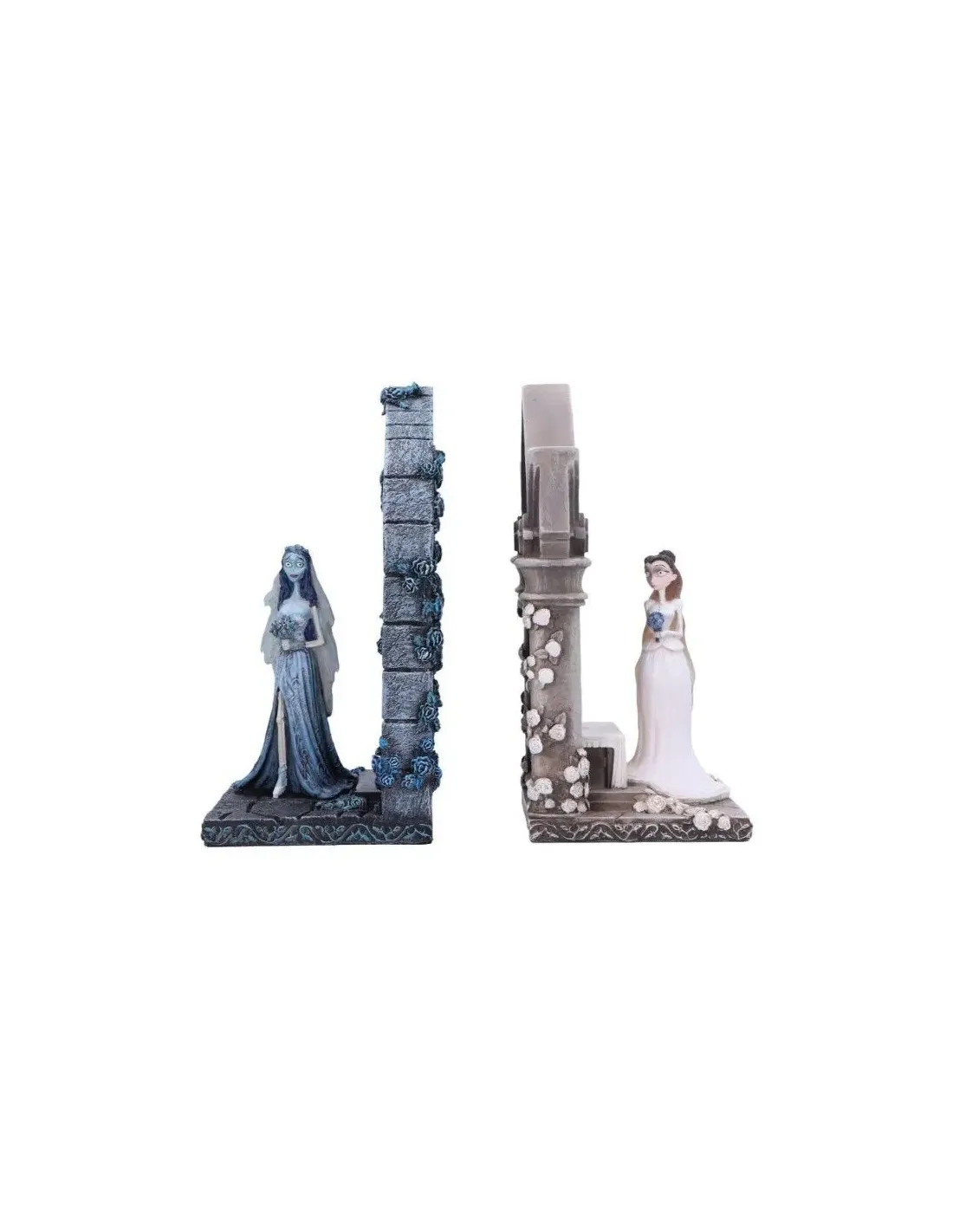 Características de los Sujetalibros La Novia Cadáver Emily y VictoriaEste conjunto de sujetalibros inspirado en la película "La Novia Cadáver" de Tim Burton es una pieza ideal para fans del cine de animación y la estética gótica. Representa a Emily y Victoria, las dos prometidas de Víctor, capturando con detalle la esencia de ambos personajes. Perfecto tanto para organizar tus libros como para aportar un toque decorativo único a cualquier estantería.Diseño fiel a la películaCada figura está cuidadosamente diseñada para reflejar la personalidad y el estilo visual de los personajes originales. Emily y Victoria aparecen representadas con gran nivel de detalle, lo que convierte este set en un objeto de colección atractivo para seguidores de Tim Burton.Inspirado en "La Novia Cadáver" de Tim BurtonIncluye las figuras de Emily y VictoriaAcabados detallados y fieles a los personajesMaterial resistente y acabado de calidadFabricados en resina de alta calidad, estos sujetalibros ofrecen una buena combinación entre durabilidad y estética. Su acabado pintado a mano aporta un aspecto cuidado y realista, ideal tanto para uso diario como decorativo.Material: resina resistenteFiguras pintadas con detalleBase estable para sujetar librosFuncionalidad decorativa y prácticaAdemás de su valor estético, estos sujetalibros cumplen perfectamente su función. Ayudan a mantener los libros organizados mientras añaden un toque distintivo a escritorios, estanterías o espacios de ocio.Uso como sujetalibros funcionalIdeal para estanterías y escritoriosPerfecto como regalo para fans de Tim Burton