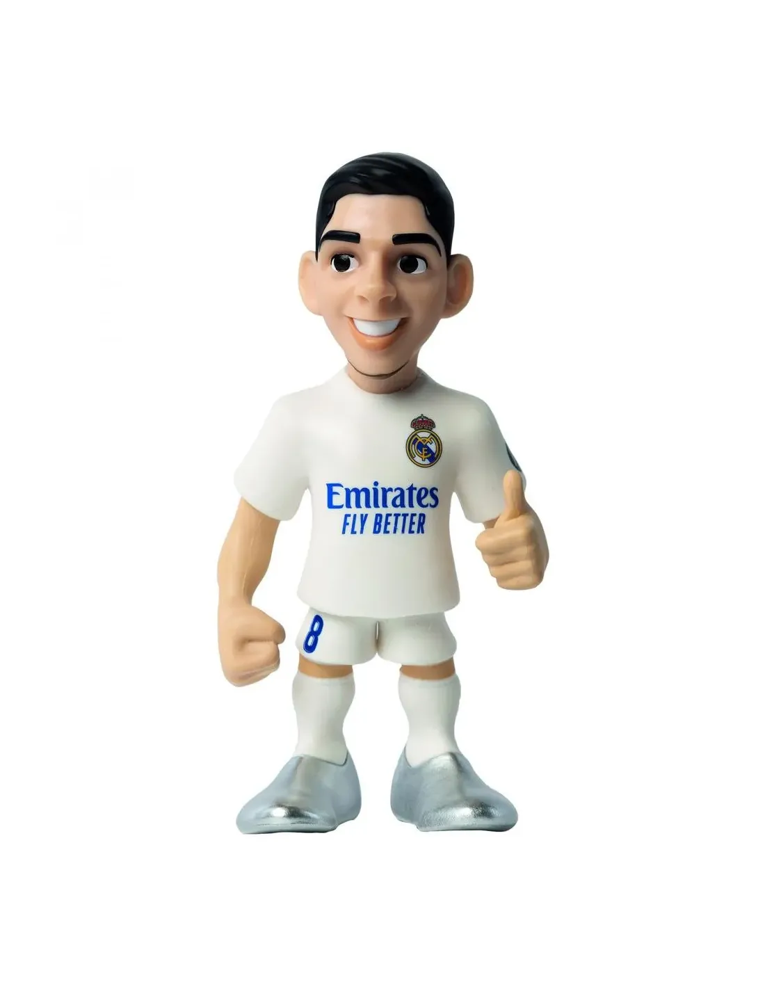 Altura: 12 cm, tamaño perfecto para exhibir o jugar.Material: Plástico resistente de alta calidad, asegurando durabilidad.Detalles precisos: Uniforme oficial del Real Madrid CF con el dorsal número 8, representando fielmente a Federico Valverde.Presentación: Viene en una caja de exhibición, ideal para coleccionistas.Producto oficial licenciado: Garantía de autenticidad y calidad.