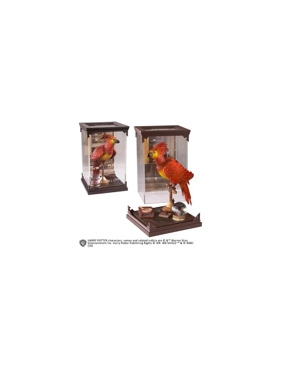 Noble Collection presenta Magical Creatures, una nueva línea de estatuasbasadas en los seres mágicos del Universo "Harry Potter" y de su spin-off"Fantastic Beast & Where to Find Them". En esta ocasión se trata del avefénix Fawkes. Viene con un pequeño diorama que hace de soporte de laestatua. Mide unos 18,5 cm de alto.