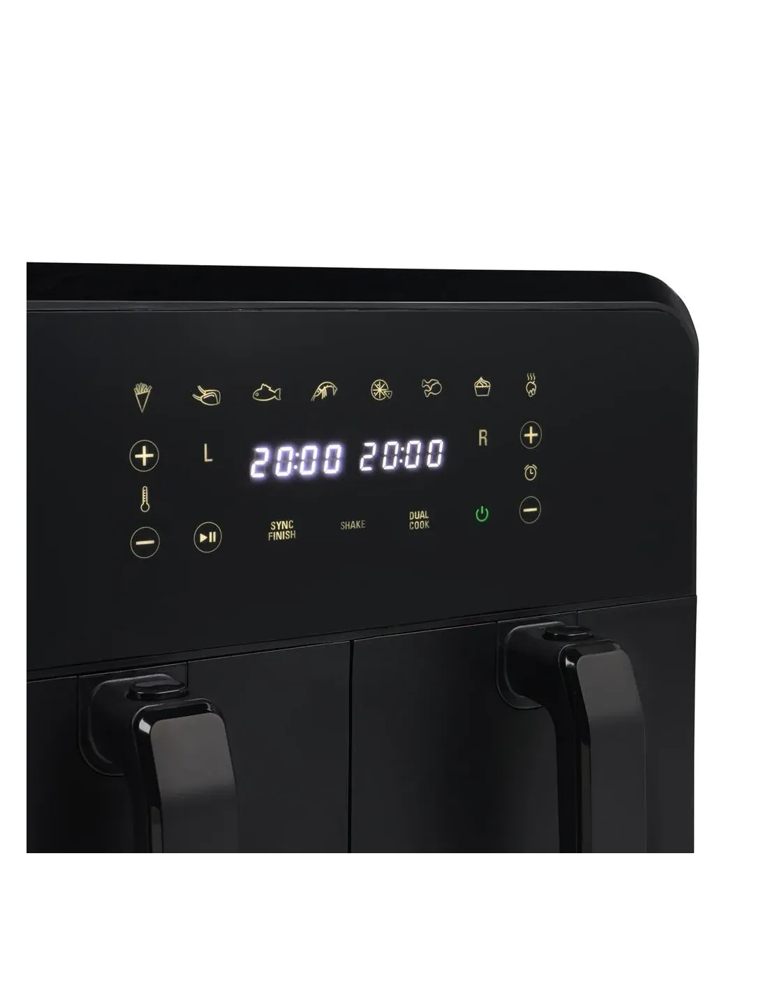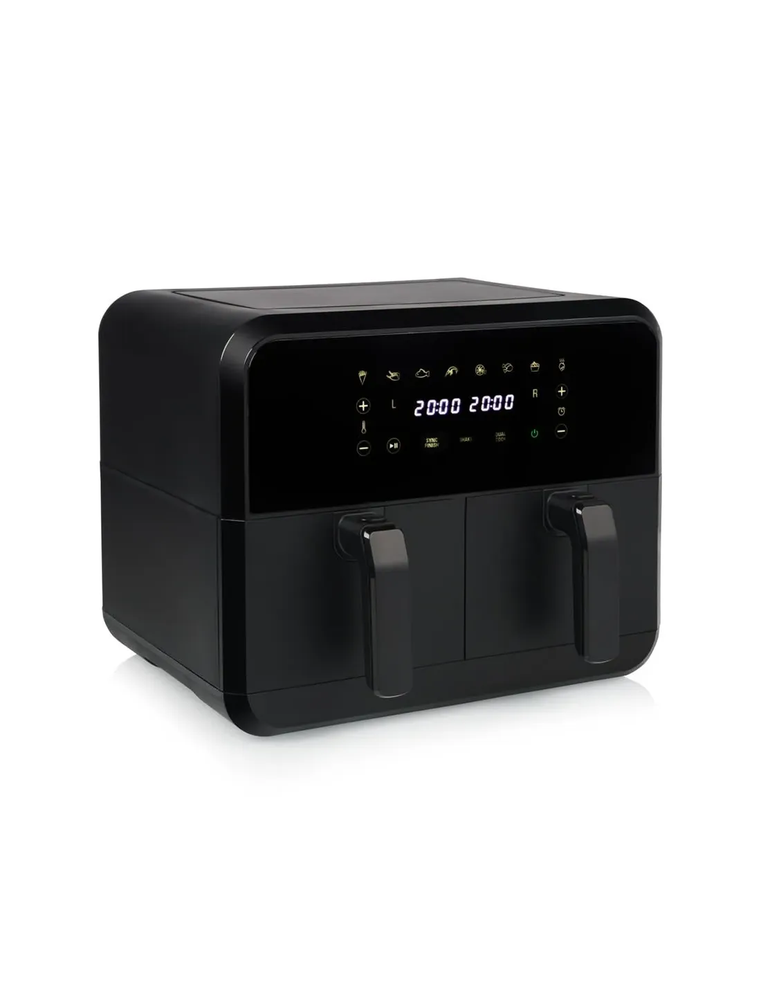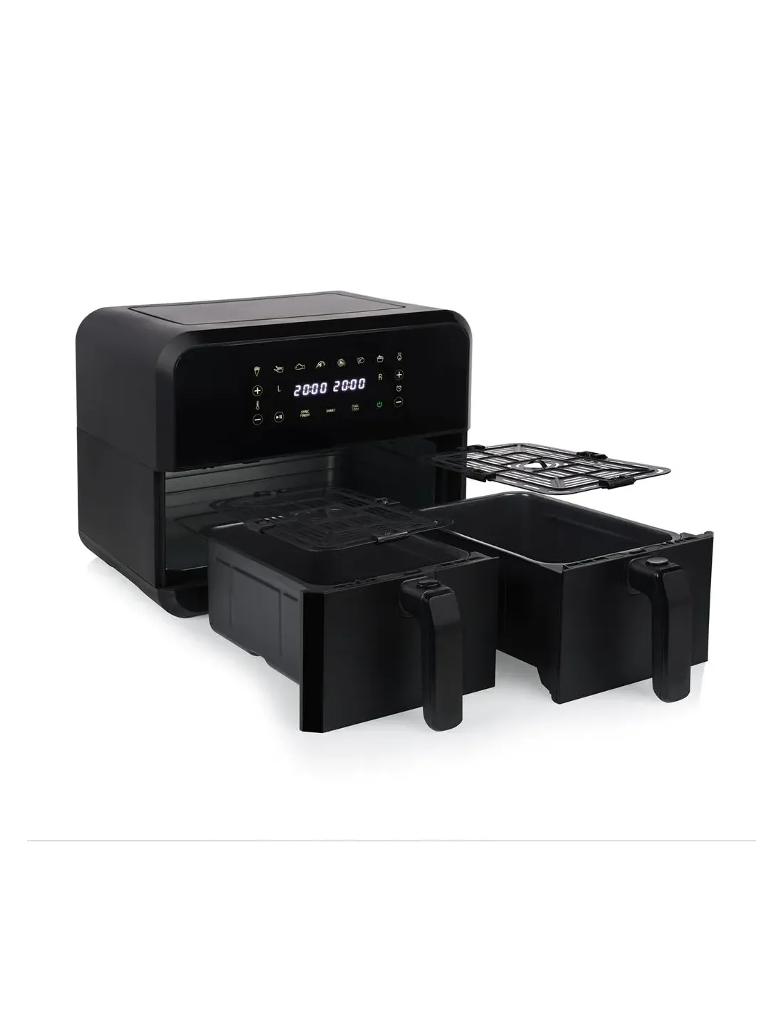 Princess 1.182068.01.001 Double Basket Airfryer. Tipo de producto: Freidora de aire caliente, Capacidad: 8 L, Temperatura (máx): 220 °C. Tipo de construcción: Doble, Color del producto: Negro, Tipo de control: Tocar. Tipo de visualizador: LED. Potencia: 2400 W, Voltaje de entrada AC: 230 V, Frecuencia de entrada AC: 50 - 60 Hz