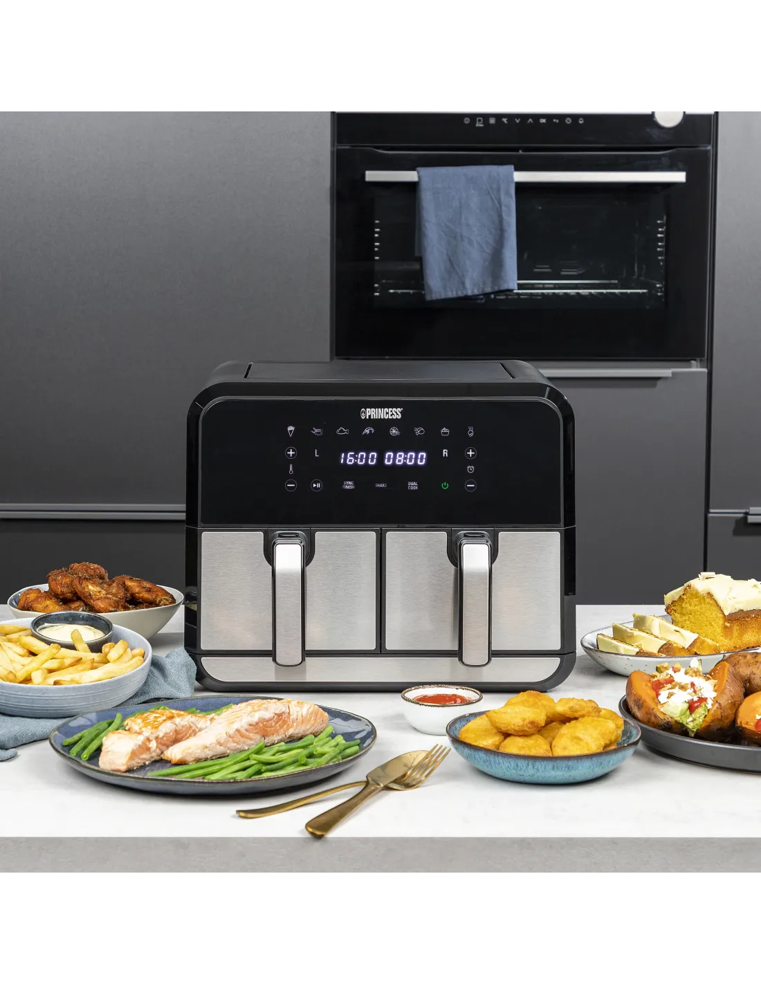 Princess 01.182074.01.001 Double Basket Aerofryer, Freidora de aire caliente, 8 L, 2 kg, 200 °C, 6 personas(s), Doble
