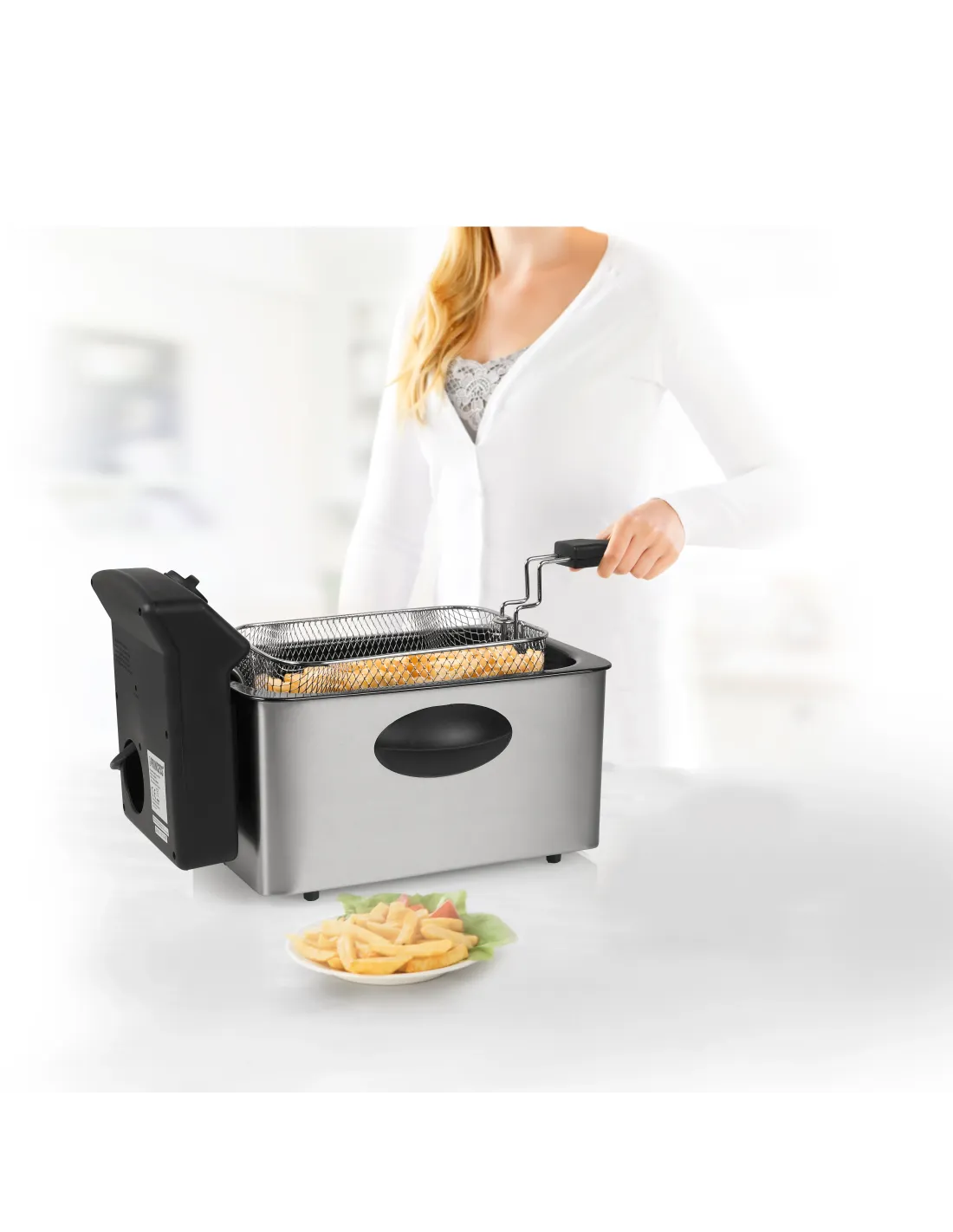Además de su elegante diseño de acero inoxidable, cuenta con 2000 W de potencia que permiten calentar el aceite en un santiamén. Y tiene 4 litros de capacidad, por lo que es ideal para preparar «snacks» para una fiesta o para toda la familia.