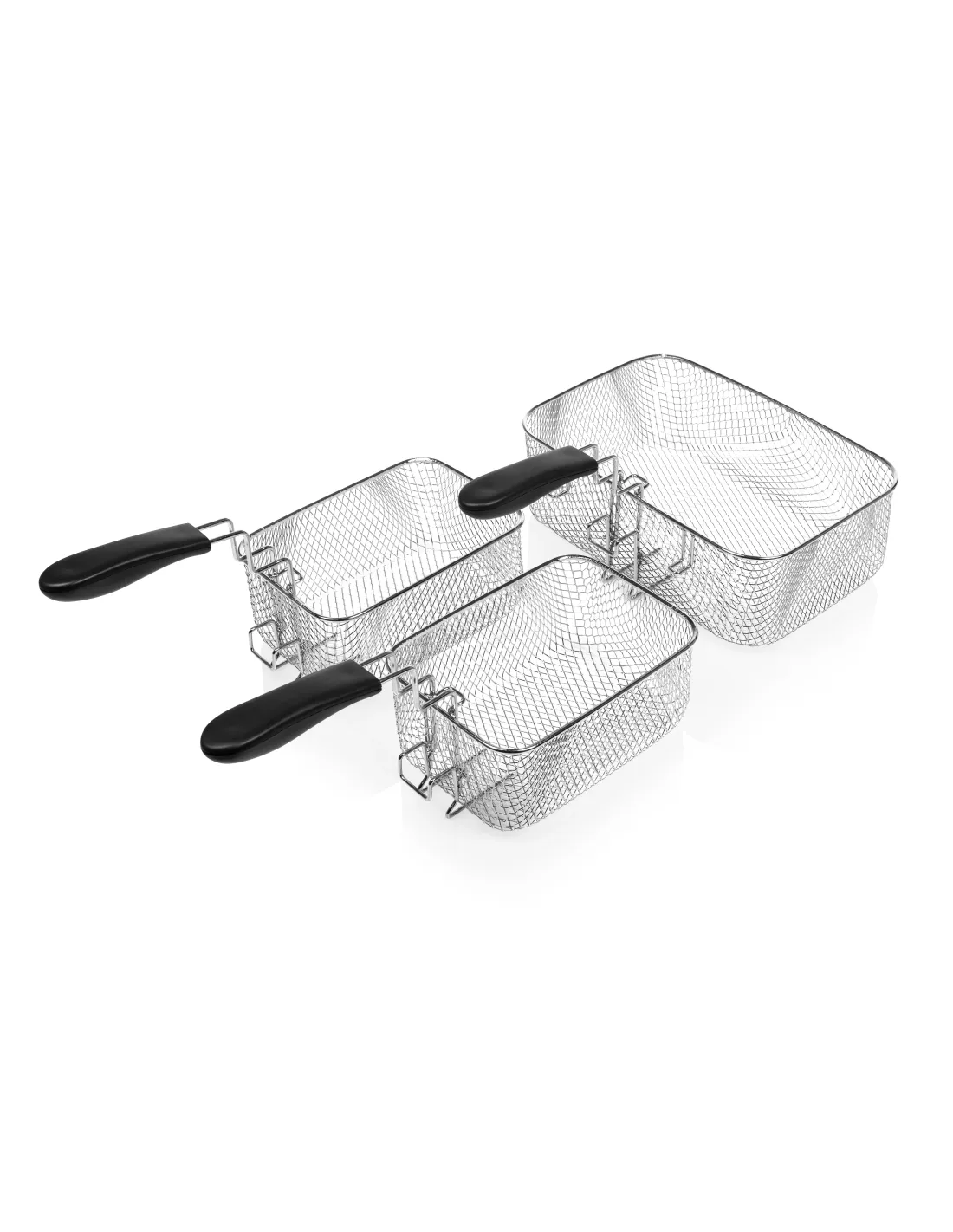 La Princess 185000 está especialmente indicada para familias grandes y para aquellas personas a las que les gusta sorprender a sus amigos con aperitivos fritos. Recibirá tres cestas (una grande y dos medianas), para que pueda freír muchas patatas a la vez si lo desea, o repartir los distintos tipos de aperitivos entre las dos cestas.