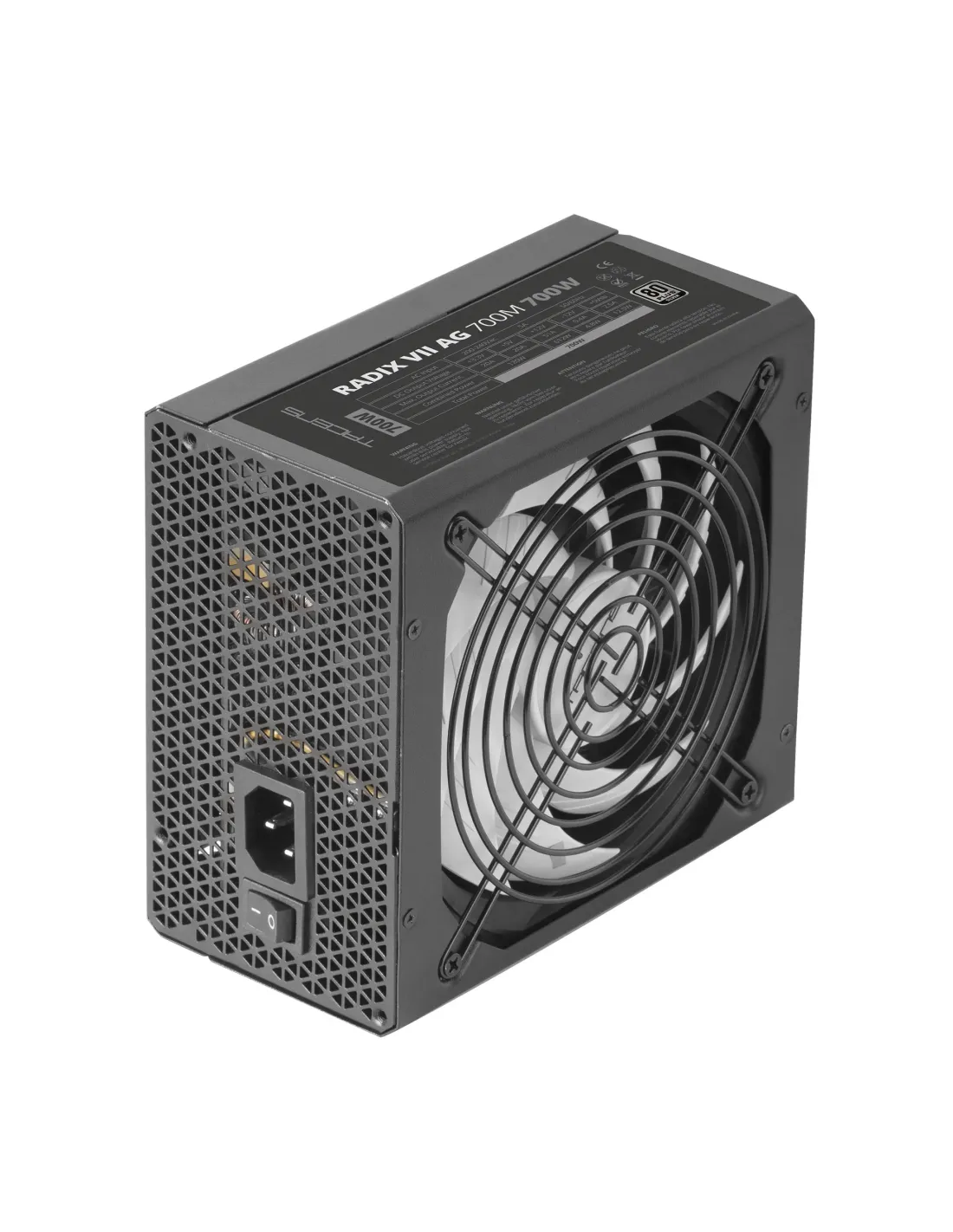Tacens RADIX VII AG 700, Fuente Alimentación Full Modular 700W ATX, 10 Años Garantía, 80Plus Silver, +87% Eficiencia, Ventilador 140mm FDB con Tecnología AI-RPM, Condensadores Japoneses 105º, Negro. Potencia total: 700 W, Voltaje de entrada AC: 200 - 240 V, Frecuencia de entrada AC: 50/60 Hz. Alimentador de energía para tarjeta madre: 20+4 pin ATX, Tipo de cableado: Totalmente modular. Utilizar con: PC, Factor de forma de fuente de alimentación (PSU): ATX, Certificación 80 PLUS: 80 PLUS Silver. Diámetro de ventilador: 14 cm, Número de ventiladores: 1 Ventilador(es). Certificados de conformidad: CE, RoHS, Certificación: ATX12V, CE, ROHS