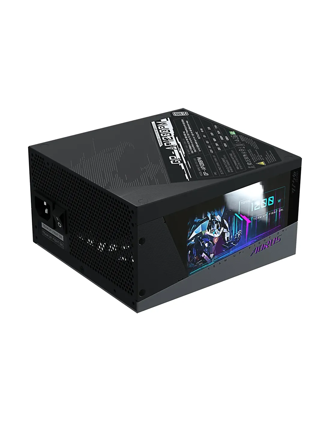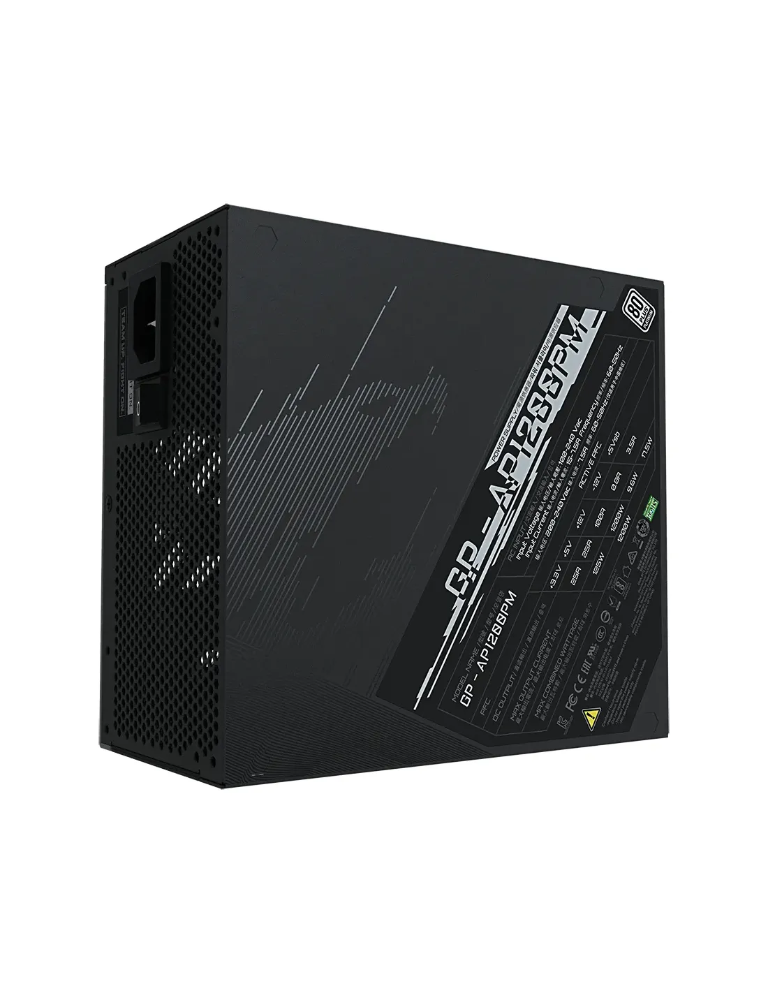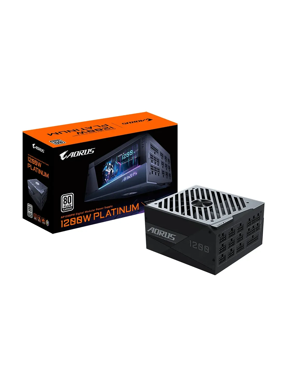 GIGABYTE AORUS P1200W. Potencia total: 1200 W, Voltaje de entrada AC: 100 - 240 V, Frecuencia de entrada AC: 50 - 60 Hz. Alimentador de energía para tarjeta madre: 20+4 pin ATX, Longitud del cable de alimentación de la placa base: 61 cm, Longitud del cable de alimentación SATA: 150,650 mm. Utilizar con: PC, Factor de forma de fuente de alimentación (PSU): ATX, Certificación 80 PLUS: 80 PLUS Platinum. Color del producto: Negro, Tipo de enfriamiento: Activo, Diámetro de ventilador: 14 cm. Cables incluidos: CPU, PCIe, Peripheral (Molex), SATA