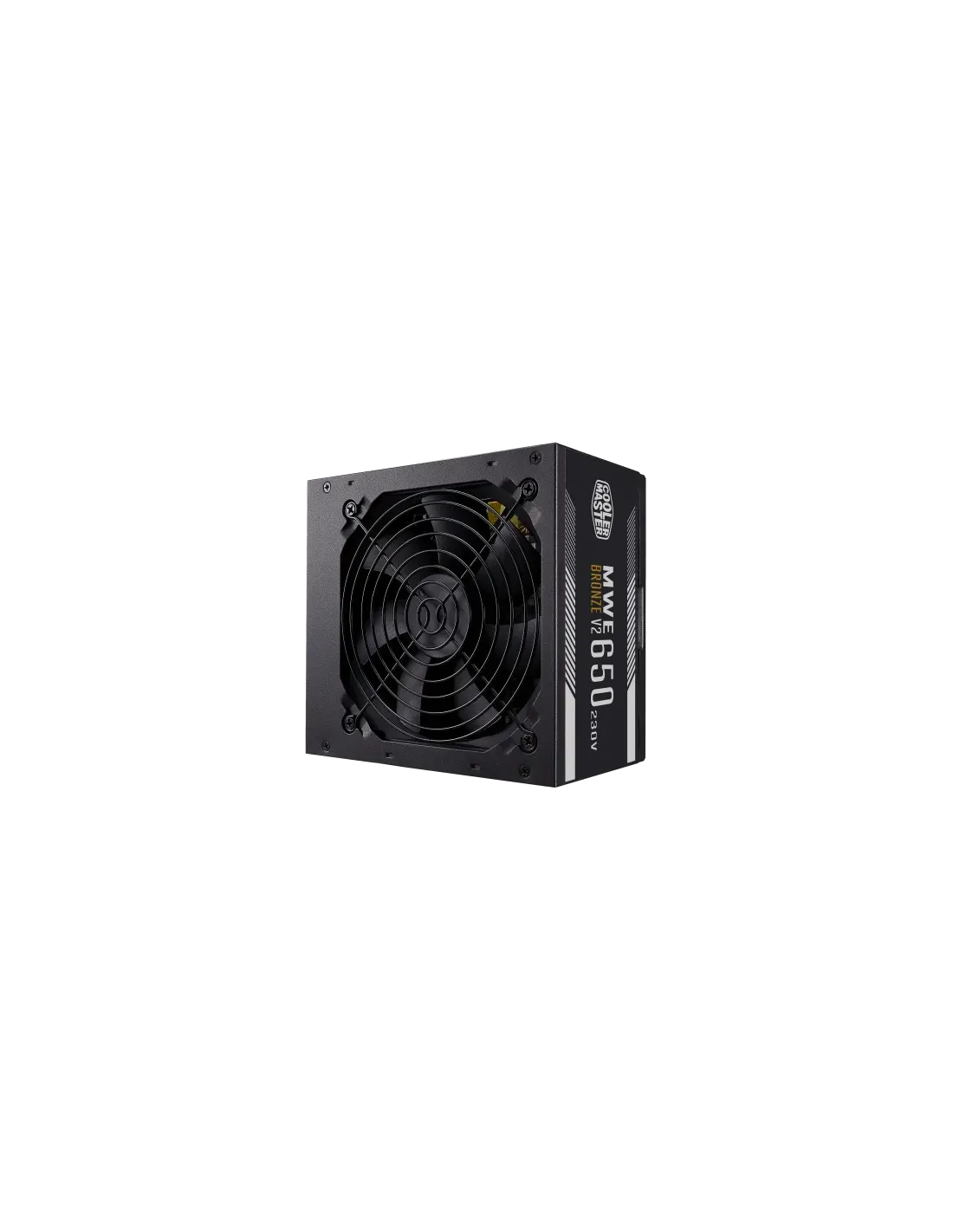 Cooler Master MWE 650 Bronze 230V V2. Potencia total: 650 W, Voltaje de entrada AC: 220 - 240 V, Frecuencia de entrada AC: 50/60 Hz. Alimentador de energía para tarjeta madre: 24-pin ATX, Tipo de cableado: No modular. Utilizar con: PC, Factor de forma de fuente de alimentación (PSU): ATX, Certificación 80 PLUS: 80 PLUS Bronze. Color del producto: Negro, Tipo de enfriamiento: Activo, Diámetro de ventilador: 12 cm. Ancho: 150 mm, Profundidad: 140 mm, Altura: 86 mm