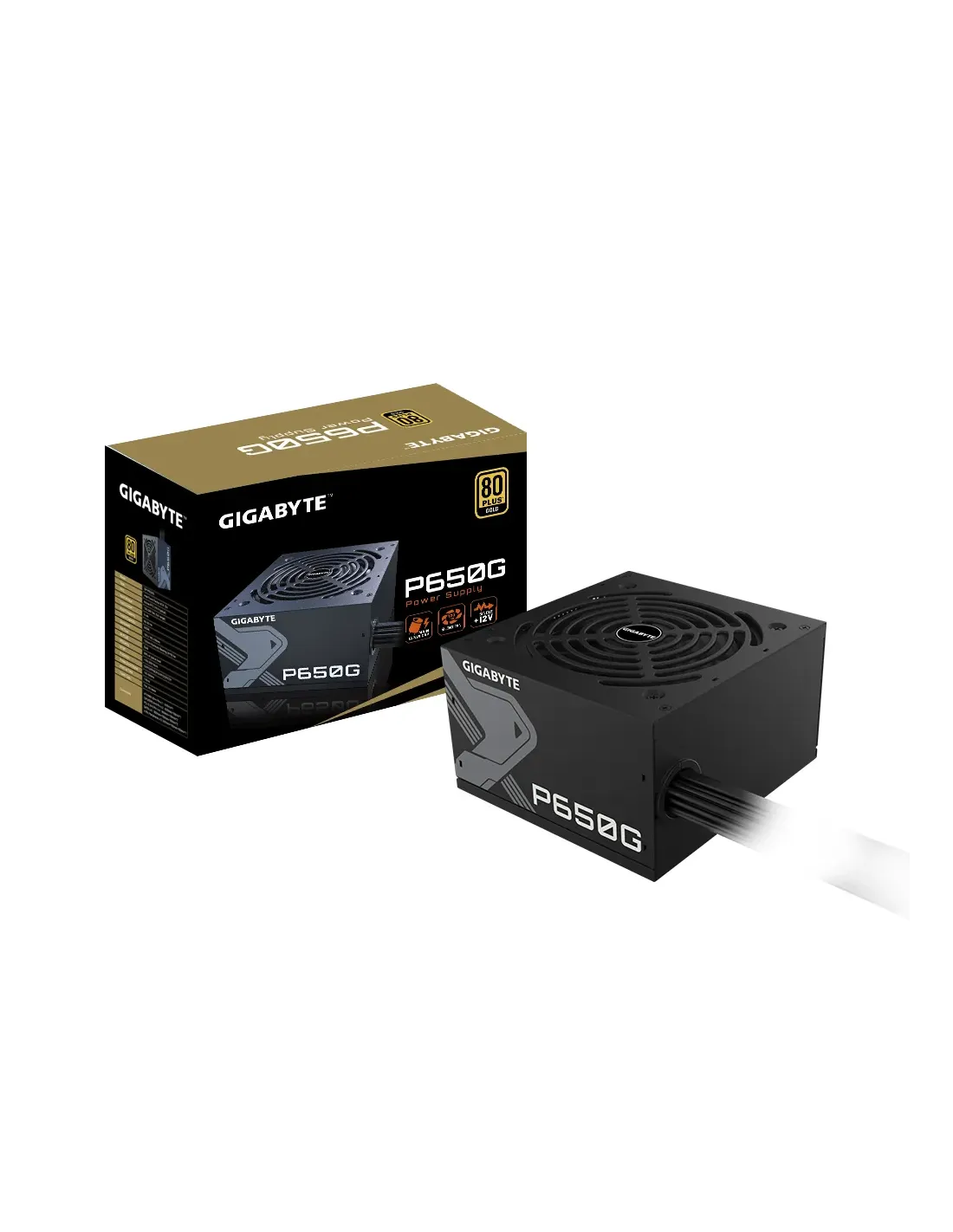 GIGABYTE GP-P650G. Potencia total: 650 W, Voltaje de entrada AC: 100 - 240 V, Corriente de entrada: 12 - 6 A. Alimentador de energía para tarjeta madre: 20+4 pin ATX, Longitud del cable de alimentación de la placa base: 50 cm, Longitud del cable de alimentación SATA: 150,500 mm. Utilizar con: PC, Factor de forma de fuente de alimentación (PSU): ATX, Certificación 80 PLUS: 80 PLUS Bronze. Color del producto: Negro, Tipo de enfriamiento: Activo, Diámetro de ventilador: 12 cm. Ancho: 140 mm, Profundidad: 150 mm, Altura: 86 mm
