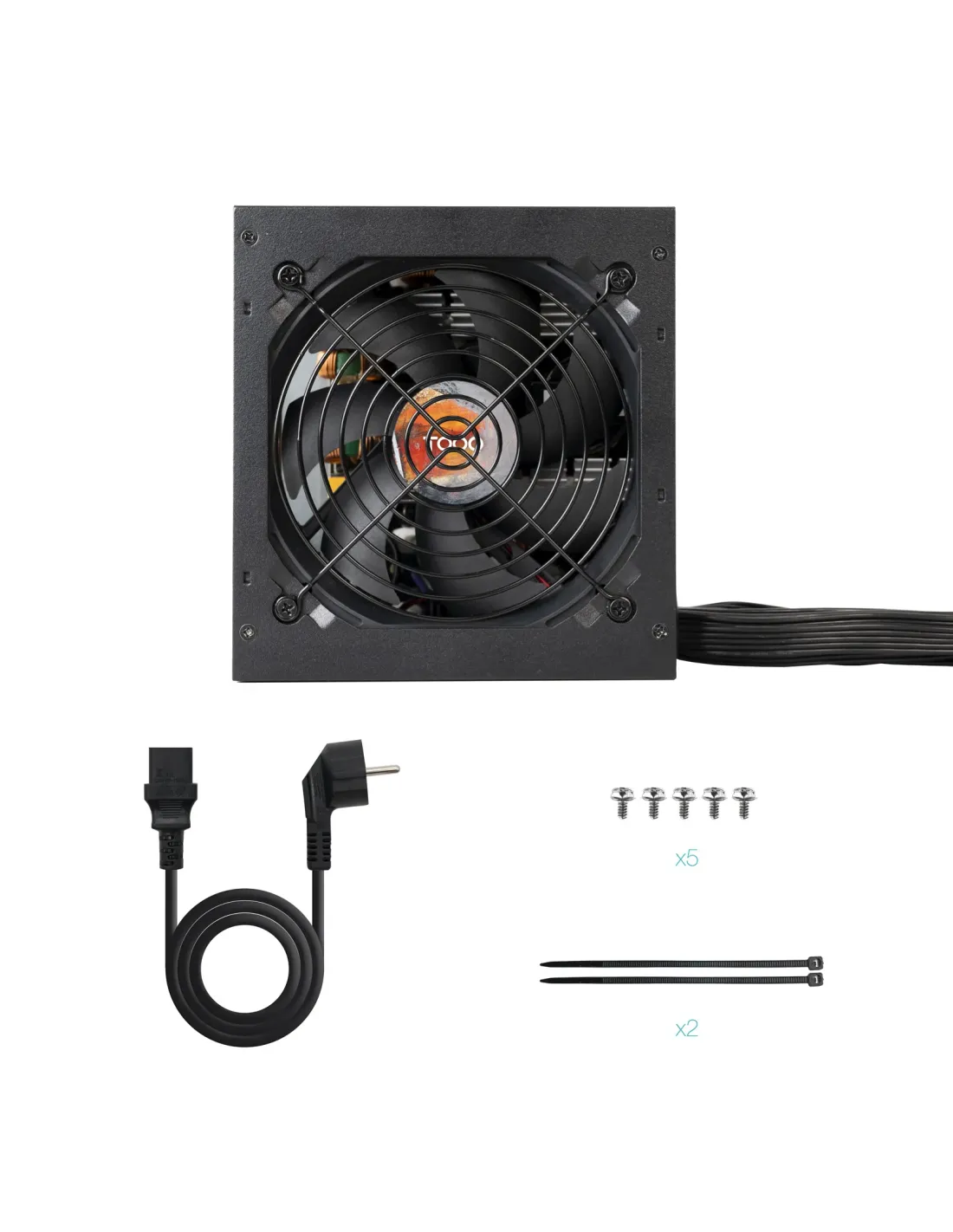TooQ Fuente de alimentación ATX 750W APFC 80Plus Bronze. Potencia total: 750 W, Voltaje de entrada AC: 200 - 240 V, Corrección del factor de potencia tipo (PFC): Activo. Alimentador de energía para tarjeta madre: 24-pin ATX, Longitud del cable de alimentación de la placa base: 55 cm, Longitud del cable de alimentación SATA: 550,700,850,1000 mm. Utilizar con: PC, Factor de forma de fuente de alimentación (PSU): ATX, Certificación 80 PLUS: 80 PLUS Bronze. Color del producto: Negro, Tipo de enfriamiento: Activo, Diámetro de ventilador: 12 cm. Contenido del paquete: 1 x Fuente de Alimentación, 1 x Cable de alimentación EU de 1.5 m, 1 x Bridas y tornillos, 1 x...