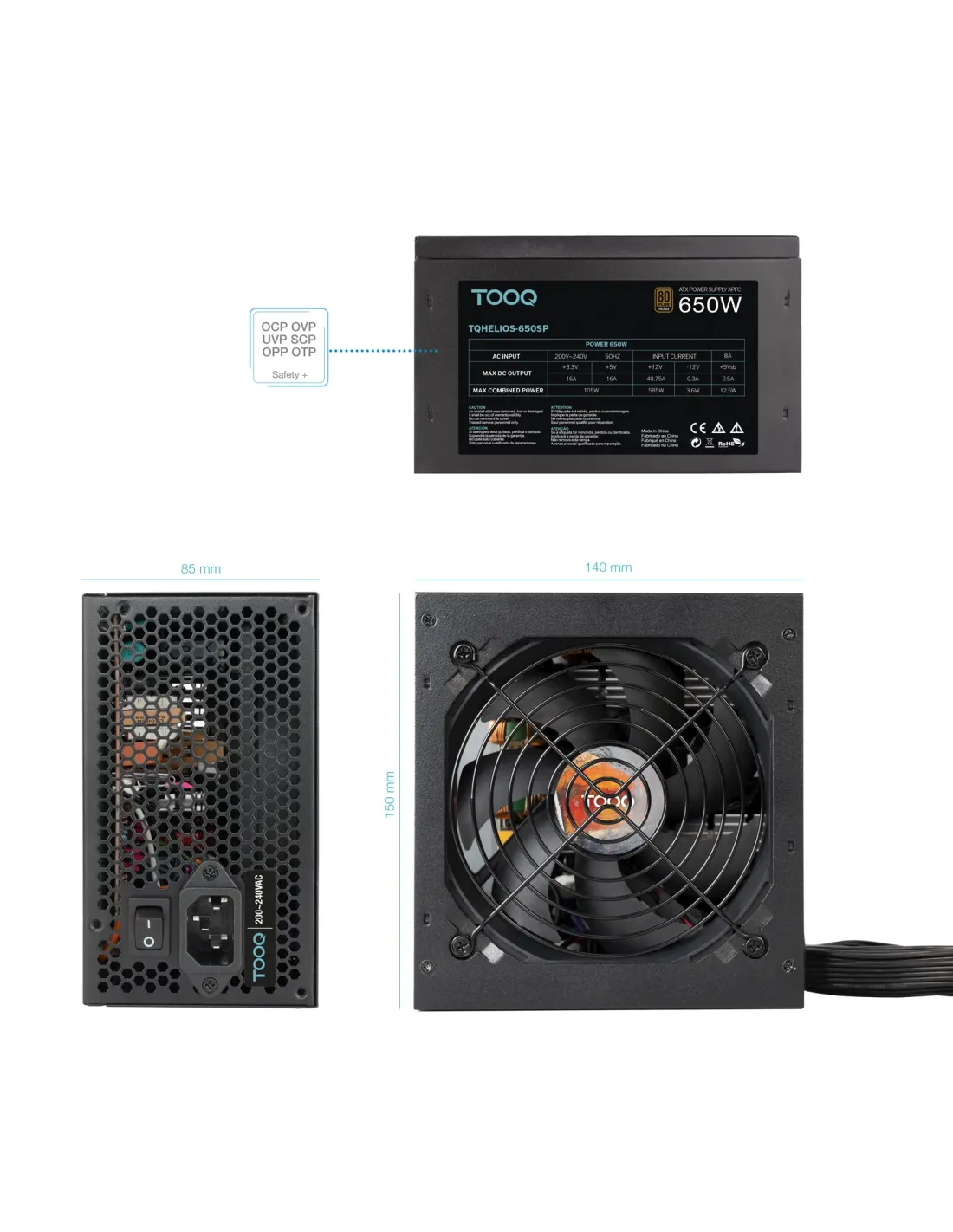 TooQ Fuente de Alimentación ATX 650W APFC 80Plus Bronze, 650 W, 200 - 240 V, Activo, 24-pin ATX, 55 cm, 550,700,850,1000 mm