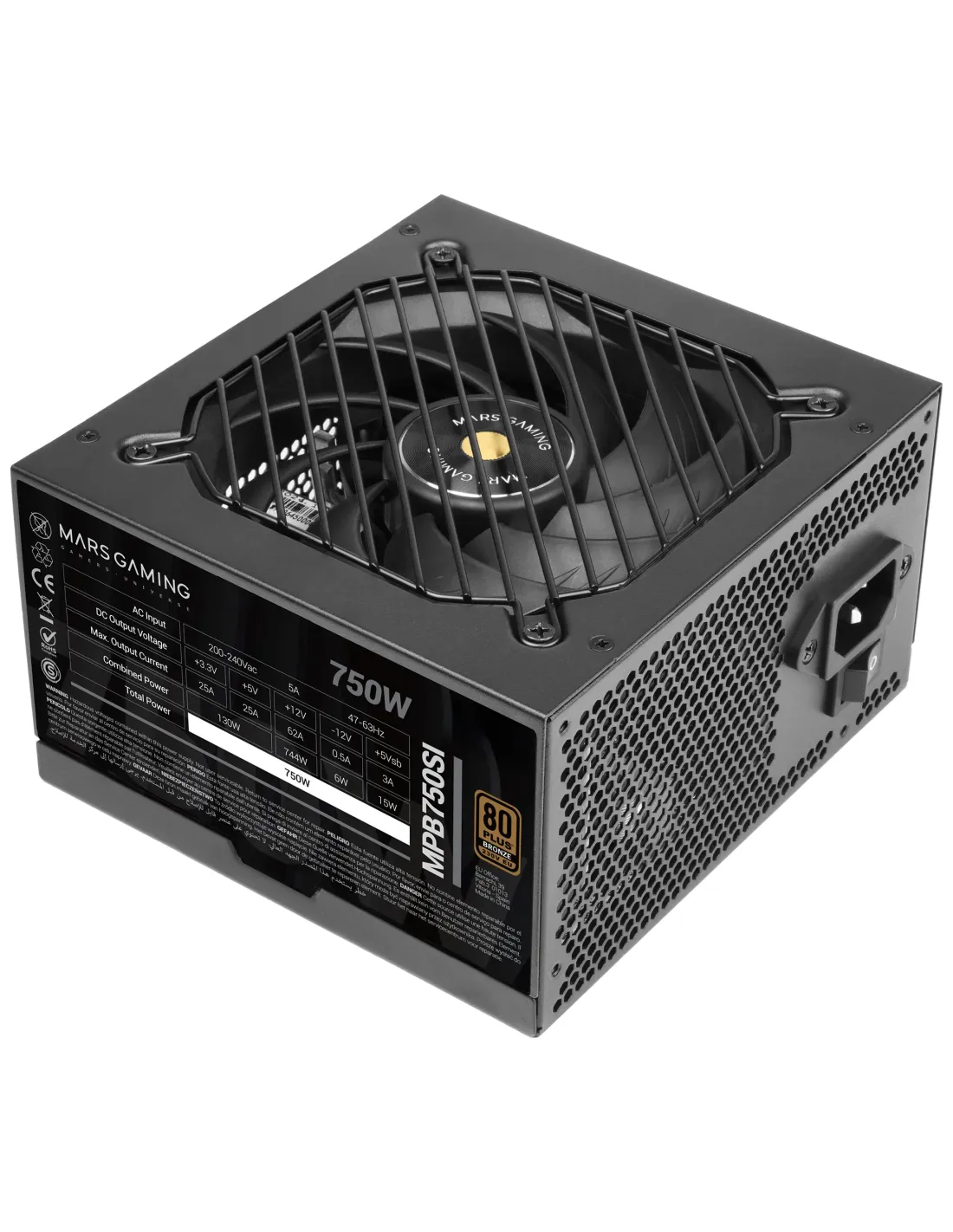 Mars Gaming MPB750SI, Fuente Alimentación PC ATX 750W, 7 Años Garantía, 80Plus Bronze 230V, 90% Eficiencia, Ventilador SI