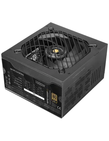 Mars Gaming MPB1000PSI. Potencia total: 1000 W, Voltaje de entrada AC: 220 - 240 V, Frecuencia de entrada AC: 47 - 63 Hz. Alimentador de energía para tarjeta madre: 24-pin ATX, Tipo de cableado: Totalmente modular. Utilizar con: PC, Factor de forma de fuente de alimentación (PSU): ATX, Certificación 80 PLUS: 80 PLUS Gold. Color del producto: Negro, Tipo de enfriamiento: Activo, Diámetro de ventilador: 14 cm. Cables incluidos: CPU, PCIe, Peripheral (Molex), SATA