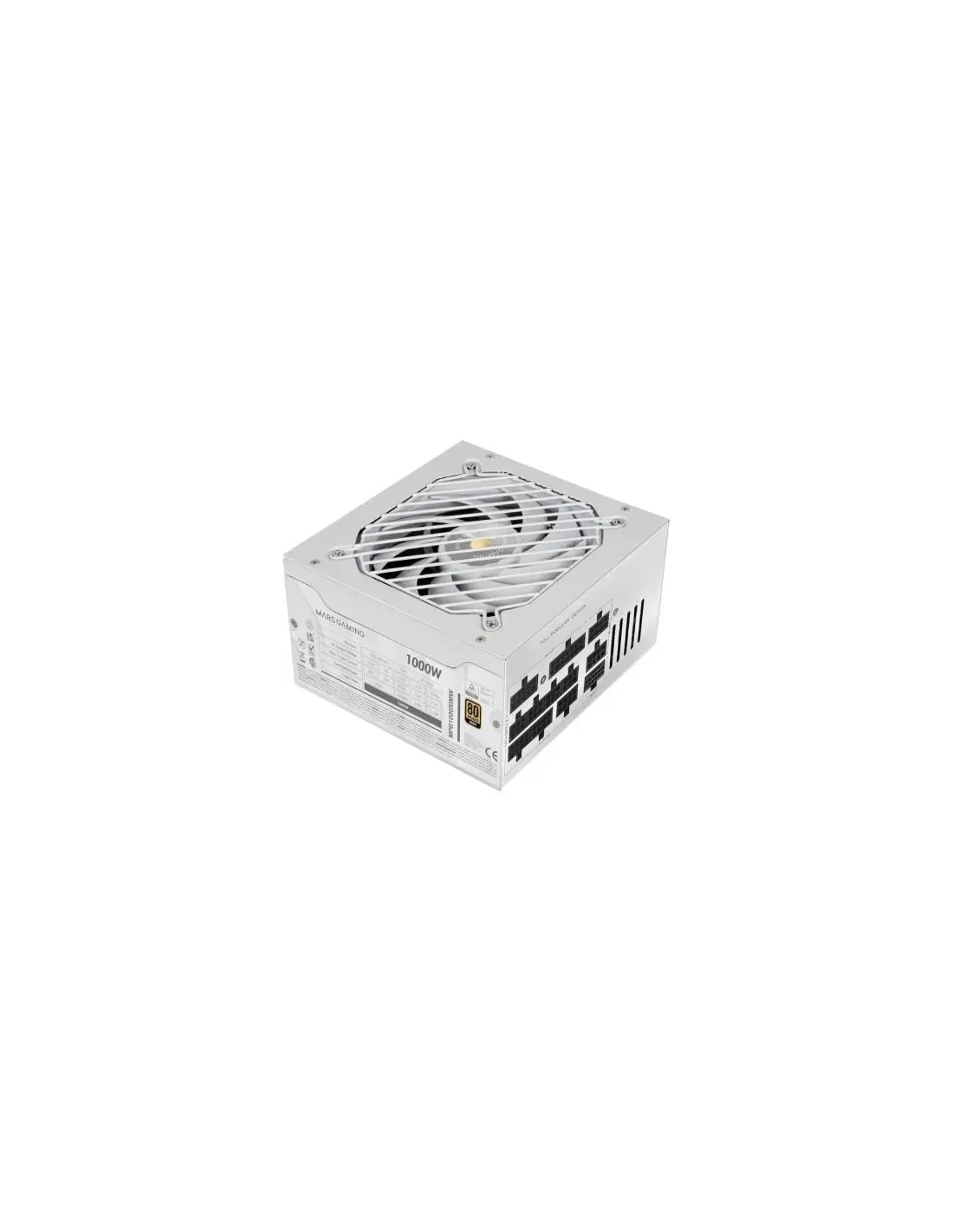 Características de la Fuente de Alimentación Modular Mars Gaming 1000W ATX 3.1 80+ GoldLa fuente de alimentación **Mars Gaming 1000W Modular ATX 3.1** está diseñada para ofrecer el máximo rendimiento en configuraciones gaming y estaciones de trabajo exigentes. Gracias a su potencia real de **1000W**, compatibilidad con **PCIe 5.1** y certificación **80 PLUS Gold**, garantiza eficiencia, estabilidad y silencio extremo incluso bajo carga intensiva. Una opción ideal para usuarios avanzados que buscan fiabilidad, orden y capacidad de actualización a largo plazo.Potencia estable con certificación 80+ GoldEste modelo ofrece una entrega de energía de alta calidad, ideal para equipos de alto consumo. Con su certificación **80 PLUS Gold**, asegura una eficiencia de más del 90%, reduciendo el calor generado y el consumo eléctrico. Todo esto se traduce en **mayor durabilidad de componentes** y mejor gestión térmica del sistema.Potencia total: 1000 WCertificación: 80 PLUS Gold (>,90% de eficiencia)Compatible con ATX 3.1 y PCIe 5.1Silencio inteligente y refrigeración eficienteIncorpora un ventilador **FDB de 140 mm** con tecnología **AI2-RPM**, que ajusta la velocidad de forma inteligente para mantener un funcionamiento silencioso y eficiente. Con un nivel de ruido de solo 14 dB, es perfecta para entornos de trabajo o juego silenciosos.Ventilador ultra silencioso de 140 mm (FDB)Tecnología AI2-RPM de control inteligente de velocidadDisipación de calor eficaz con refrigeración activaCableado modular y montaje limpioSu diseño **Full Modular** permite conectar solo los cables necesarios, lo que facilita una gestión del cableado ordenada y mejora el flujo de aire interno. Los cables planos extralargos permiten adaptarse fácilmente a cualquier torre.Cableado 100% modularIncluye cables CPU, PCIe, SATA y MolexDiseño limpio para mejorar la ventilaciónProtección completa y garantía extendidaEquipada con un sistema de **protección eléctrica multinivel** (OCP, OVP, UVP, SCP, OTP, entre otras), y con **certificación TÜV Rheinland**, esta fuente asegura una operación estable y segura. Además, cuenta con **7 años de garantía**, reflejo de su fiabilidad a largo plazo.Protecciones: OCP, OVP, UVP, SCP, OPP, OTP, NLO, PFP, TCP, OLPCertificaciones: CE, RoHS, TÜV mark7 años de garantía del fabricanteTecnologías avanzadas para sistemas modernosGracias a sus tecnologías internas **DC-DC y SMD**, esta fuente mejora la eficiencia en la conversión de energía y garantiza una **estabilidad de tensión precisa**, especialmente crítica para GPUs de última generación.Tecnología de conversión DC-DC para voltajes más precisosDiseño SMD que mejora la durabilidad y eficienciaPreparada para GPUs modernas y configuraciones avanzadasDiseño compacto y funcionalA pesar de su alta potencia, mantiene un formato compacto ATX que se adapta a la mayoría de cajas. Su interruptor físico y componentes de calidad la convierten en una opción versátil y robusta para todo tipo de configuraciones avanzadas.Dimensiones: 150 x 160 x 85 mmPeso: 1,75 kgInterruptor de encendido/apagado integradoOtras especificacionesVoltaje de entrada: 220 - 240 V / 47 - 63 HzCorriente de entrada: 15 AFactor de potencia: 0,9 (PFC activo)Corriente máxima de salida (+12V): 83,3 AConectores PCIe (6+2 pines): 4Conectores SATA: 6 / Molex: 3 / EPS 4+4: 2Color del producto: NegroCable 12V 2x6 no incluido