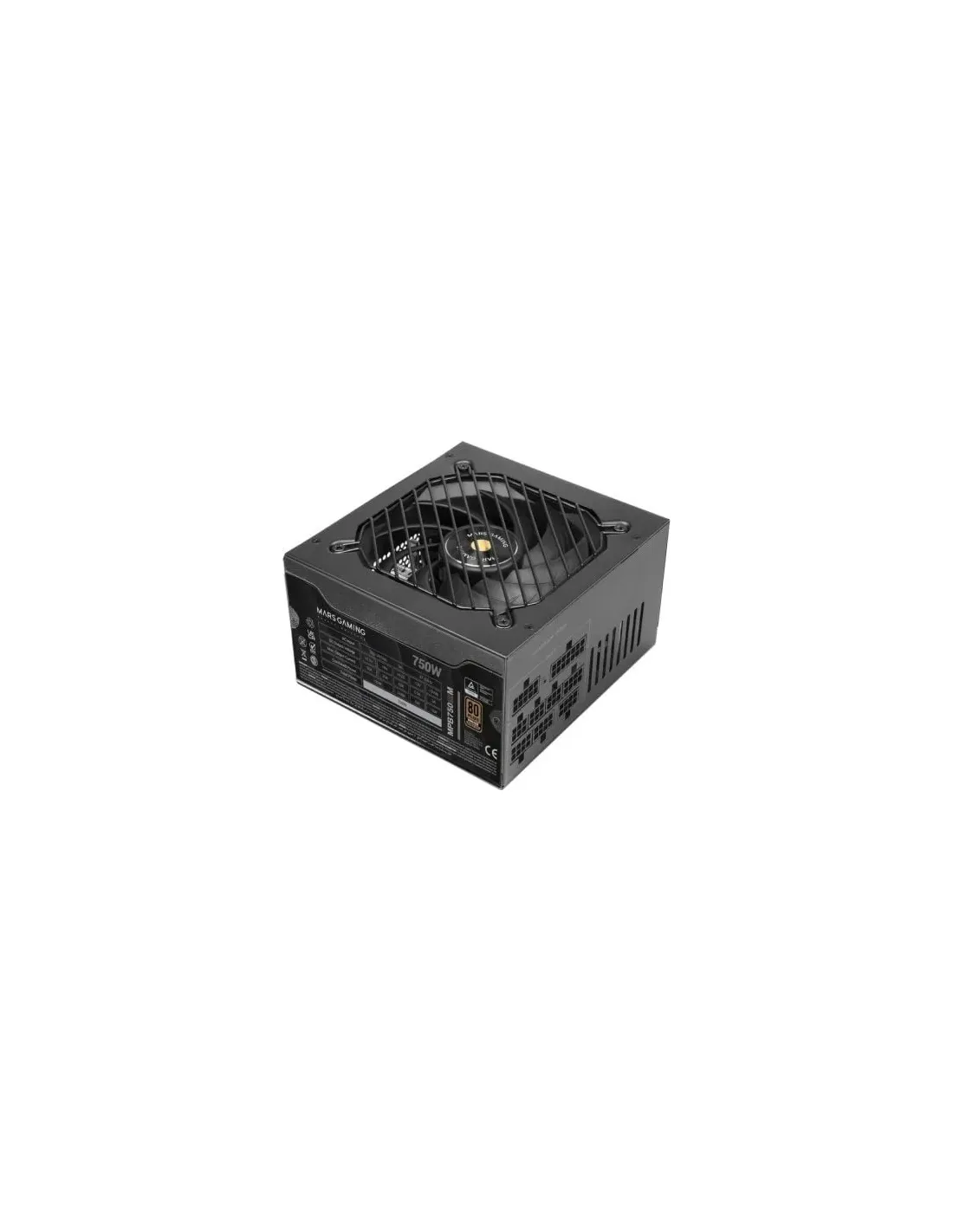 Características de la Fuente de Alimentación Modular Mars Gaming 750W ATX 80+ BronzeLa **Mars Gaming 750W ATX Modular** está diseñada para los usuarios exigentes que buscan una fuente de alimentación fiable, silenciosa y altamente eficiente. Gracias a su diseño **FULL modular**, su potente ventilador de 140 mm ultra silencioso y una garantía de 7 años, esta fuente es ideal tanto para PCs de alto rendimiento como para estaciones de trabajo avanzadas. Ofrece **hasta un 90 % de eficiencia energética**, conectores de calidad premium y protecciones integrales para mantener tus componentes siempre seguros.Potencia real de 750W con alta eficienciaEsta fuente proporciona una entrega de energía estable y continua, ideal para **equipos gaming, creadores de contenido o estaciones de trabajo** que demandan el máximo rendimiento.Potencia total real de 750 W con riel único de +12V (62 A)Certificación 80 PLUS Bronze 230V EU (hasta un 90 % de eficiencia)Tecnologías avanzadas DC-DC y SMD para mejor regulación de voltajeDiseño FULL modular y cableado premiumCon un diseño totalmente modular, solo conectarás los cables necesarios, mejorando la **gestión del cableado y el flujo de aire** dentro del chasis. Sus cables planos, negros y extralargos facilitan el montaje y aportan una estética limpia y profesional.Cables planos negros y extralargosConectores: 1x 24-pin ATX, 2x EPS 4+4 pines, 2x PCIe 6+2 pines, 5x SATA, 3x MolexCompatible con todo tipo de torres ATXVentilación ultra silenciosa con control inteligenteSu ventilador de 140 mm con rodamientos FDB está controlado por el sistema AI2-RPM, que **ajusta automáticamente la velocidad según la carga** del sistema, logrando un funcionamiento casi imperceptible en reposo y una refrigeración eficiente bajo carga.Ventilador FDB de 140 mm con nivel de ruido de solo 12 dBControl inteligente AI2-RPM con adaptación en tiempo realUbicación superior del ventilador para mejor extracción del calorProtección total para tu sistemaLa fuente Mars Gaming incluye un conjunto completo de **protecciones eléctricas** que aseguran la integridad de tus componentes en todo momento.Protecciones: OVP, UVP, OCP, OPP, SCPDiseño con componentes de grado A para mayor durabilidadDiseño robusto y certificaciones de calidadCon un chasis negro compacto y robusto, cumple con los principales estándares de seguridad y eficiencia del mercado europeo.Formato ATX estándar (150 x 160 x 85 mm)Peso: 1,7 kgCertificaciones: CE, RoHS, TÜV markOtras especificacionesVoltaje de entrada: 220-240 V / Frecuencia: 47-63 HzFactor de potencia: 0.9 / PFC activoPotencia combinada +3.3V y +5V: 130 W / -12V: 6 W / +5VSB: 15 WInterruptor de encendido/apagado integrado