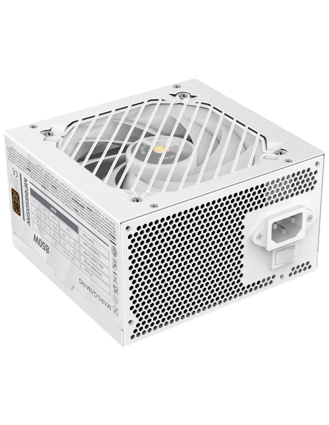 Características de la Fuente de Alimentación Mars Gaming 850W MPB850SIW Extreme Silence 80 Plus Bronze BlancaLa Mars Gaming MPB850SIW es una fuente de alimentación ATX de 850W con diseño modular y estética en color blanco, especialmente pensada para equipos de alto rendimiento. Ofrece una combinación excepcional de eficiencia, refrigeración silenciosa y fiabilidad a largo plazo, siendo compatible con los estándares más modernos como ATX 3.1 y PCIe 5.1. Su diseño optimizado la convierte en una opción ideal para gamers, creadores de contenido y entornos profesionales exigentes.Certificación 80 Plus Bronze y componentes de alta gamaCon una eficiencia energética superior al 90%, la MPB850SIW reduce el consumo eléctrico y minimiza la generación de calor. Integra condensadores japoneses Toshin Kyogo de 105°C, conocidos por su durabilidad y estabilidad, incluso bajo cargas intensas.Certificación 80 Plus BronzeCondensadores japoneses 105°CActive-PFC digital con 99% de eficienciaSilencio extremo y refrigeración inteligenteEquipada con un ventilador SI Extreme Silence de 140 mm y tecnología AI2-RPM, esta fuente adapta automáticamente la velocidad del ventilador según la temperatura del sistema, combinando inteligencia artificial y machine learning. Obtienes refrigeración eficiente cuando se necesita y silencio absoluto en reposo o baja carga.Ventilador ultra silencioso de 140 mm con rodamientos FDBTecnología AI2-RPM con regulación automáticaNúcleo de cobre y aluminio para mayor durabilidadCompatibilidad con ATX 3.1 y PCIe 5.1Su conector nativo 12V 2x6 permite una integración perfecta con las GPU de última generación sin necesidad de adaptadores. Está diseñada para soportar configuraciones de alto consumo de forma segura y eficiente.Compatible con ATX 3.1 y PCIe 5.1Conector 12V 2x6 incluidoEntrega de energía limpia y estableProtección electrónica completa y garantía de 10 añosIncluye un conjunto avanzado de protecciones electrónicas integradas para salvaguardar todos los componentes: OCP, OVP, OPP, OTP, OLP, NLO, PFP, UVP, SCP y TCP. Además, cuenta con una garantía extendida de 10 años, asegurando su fiabilidad a largo plazo.Protecciones completas contra sobrecarga, cortocircuito y másAlta durabilidad garantizada10 años de garantía del fabricanteDiseño modular y montaje eficienteGracias a su diseño 100% modular, permite gestionar el cableado de forma limpia y ordenada, mejorando el flujo de aire dentro del chasis y facilitando el montaje.Conectores completamente modularesInstalación más rápida y limpiaMejora del flujo de aire internoTecnología DC-DC y SMDLa conversión de voltaje es más precisa y estable gracias a la tecnología DC-DC, mientras que la integración SMD reduce el consumo energético hasta en un 20%. Esto se traduce en un rendimiento más eficiente y una mayor vida útil.Conversión de voltaje precisaEficiencia energética mejoradaMenor generación de calorOtras especificaciones técnicasPotencia total: 850 WVoltaje de entrada: 200 - 240 V | Frecuencia: 47 - 63 HzCorriente de entrada: 8 A | Factor de poder: 0,9Conectores PCIe (6+2): 4 | SATA: 6 | Molex: 3 | EPS (4+4): 2Formato: ATX | Color: Blanco | Tipo de enfriamiento: ActivoDiámetro del ventilador: 140 mm | Ubicación: SuperiorDimensiones: 150 x 145 x 85 mm | Peso: 1,6 kgCertificados: CE, RoHS