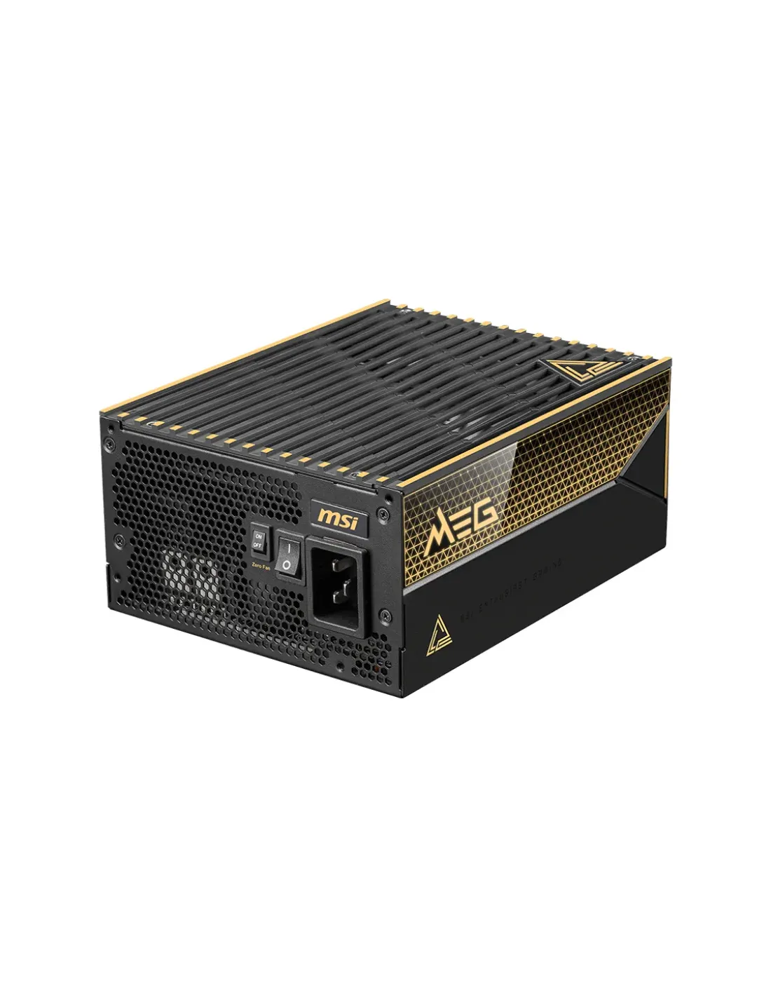 MSI MEG Ai1600T PCIE5. Potencia total: 1600 W, Voltaje de entrada AC: 100 - 240 V, Corrección del factor de potencia tipo (PFC): Activo. Alimentador de energía para tarjeta madre: 24-pin ATX, Tipo de cableado: Totalmente modular. Utilizar con: PC, Factor de forma de fuente de alimentación (PSU): ATX, Certificación 80 PLUS: 80 PLUS Titanium. Color del producto: Negro, Diámetro de ventilador: 13,5 cm. Ancho: 190 mm, Profundidad: 150 mm, Altura: 86 mm