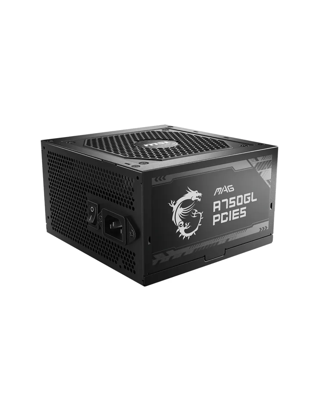 MSI MAG A750GL PCIE5. Potencia total: 750 W, Voltaje de entrada AC: 100 - 240 V, Frecuencia de entrada AC: 47 - 63 Hz. Alimentador de energía para tarjeta madre: 20+4 pin ATX, Longitud del cable de alimentación de la placa base: 45 cm, Tipo de cableado: Totalmente modular. Utilizar con: PC, Factor de forma de fuente de alimentación (PSU): ATX, Certificación 80 PLUS: 80 PLUS Gold. Color del producto: Negro, Tipo de enfriamiento: Activo, Diámetro de ventilador: 12 cm. Ancho: 150 mm, Profundidad: 140 mm, Altura: 86 mm