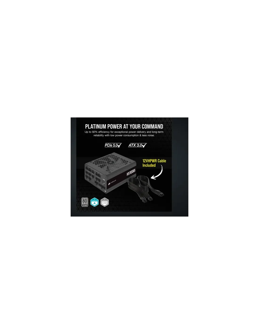Fuente de alimentación para PC HX1000i Fully Modular Ultra-Low Noise Platinum ATX de 1000 vatios (EU) .Compatible con GPUs NVIDIA serie 4000 y AMD® Ryzen serie 7000. Ventilador de levitación magnética con modo de cero RPM. Condensadores electrolíticos 100% japoneses a 105°C.10 años de garantía. Certificación ATX 3.0 y PCIe 5.0.