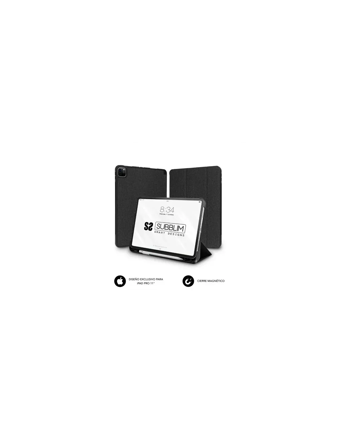 Exclusiva funda para el iPad Pro 11” 2020 que proporcionará un total protección a tu dispositivo en todo momento. Tiene un diseño moderno y elegante en formato Full SmartCover. La carcasa posterior está hecha de material de termoplástico que disipa el calor del iPad además de ofrecer una especial protección para que no tenga que preocuparse por ningún daño y añade unos bordes reforzados contra las caídas. Ofrece una fácil instalación con un sencillo clip. Dispone de diferentes ángulos de visión con los que podrás visionar vídeos o escribir. Todas las funcionas de la Tablet son accesibles con la funda puesta y posee una abertura para cámara que permite tomar fotos y videos. Esta funda de una pieza se ajustará a tu nuevo iPad Pro 11” 2020 como un guante\ny con un cierre magnético de precisión. Ofrece una forma ideal de protección donde quiera que vaya.\n\nShock Absortion\nLos bordes y cantos de la funda proporcionan una protección extra y están pensados contra las caídas accidentales.\n\nDos ángulos de visión\nUno que te permitirá el visionado de vídeos y películas favoritas además de otro que te permitirá una perfecta escritura.\n\nExclusiva\nEspecialmente diseñada para el modelo iPad Pro 11” 2020. Acceso perfecto a todos los botones, puerto de carga y apertura de cámara.\n\nSlot Apple Pencil\nDispone de un exclusivo Slot para transportar el Apple Pencil con total tranquilidad y protección