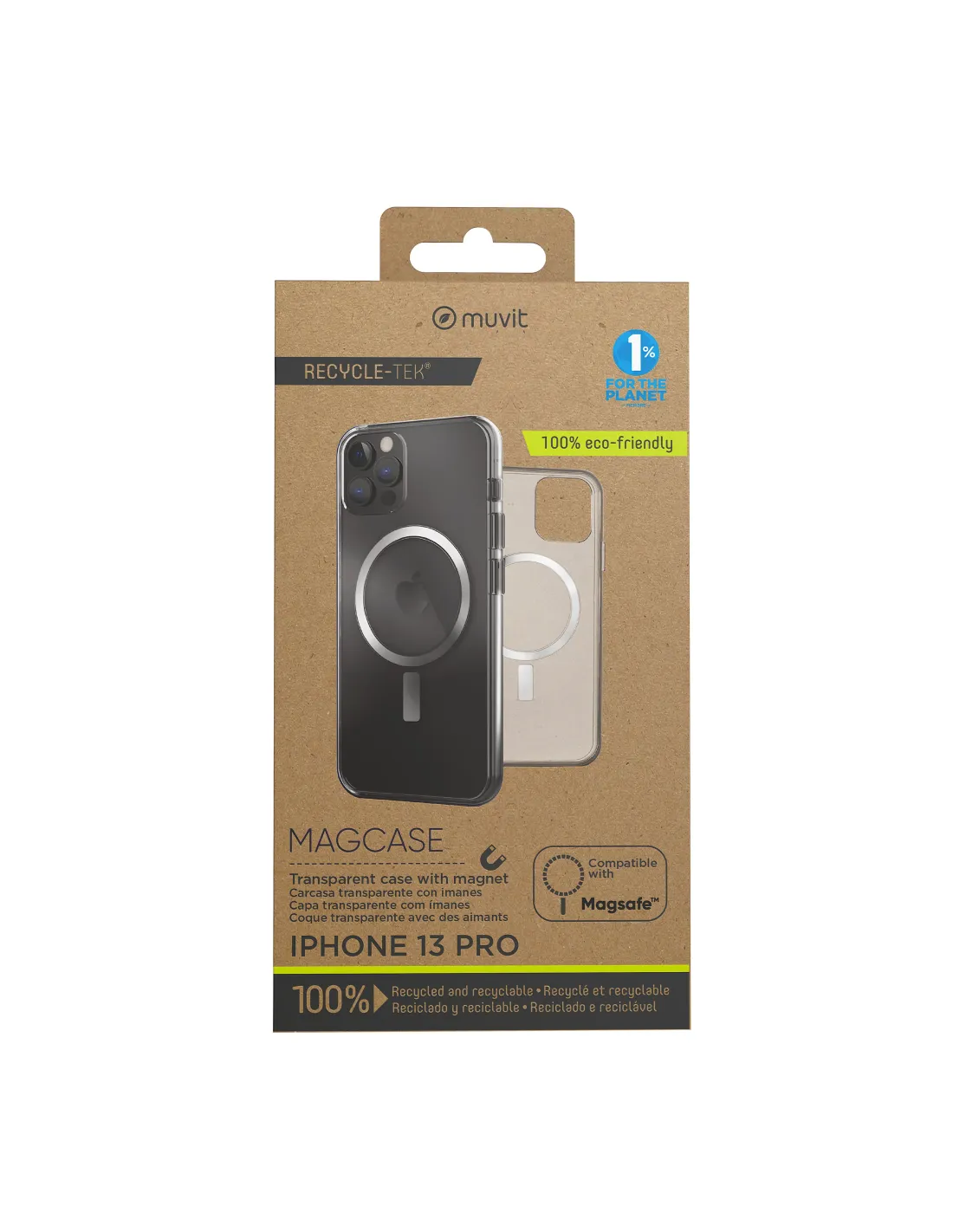 Funda muvit recycletek magsafe para apple iphone 13 pro transparente