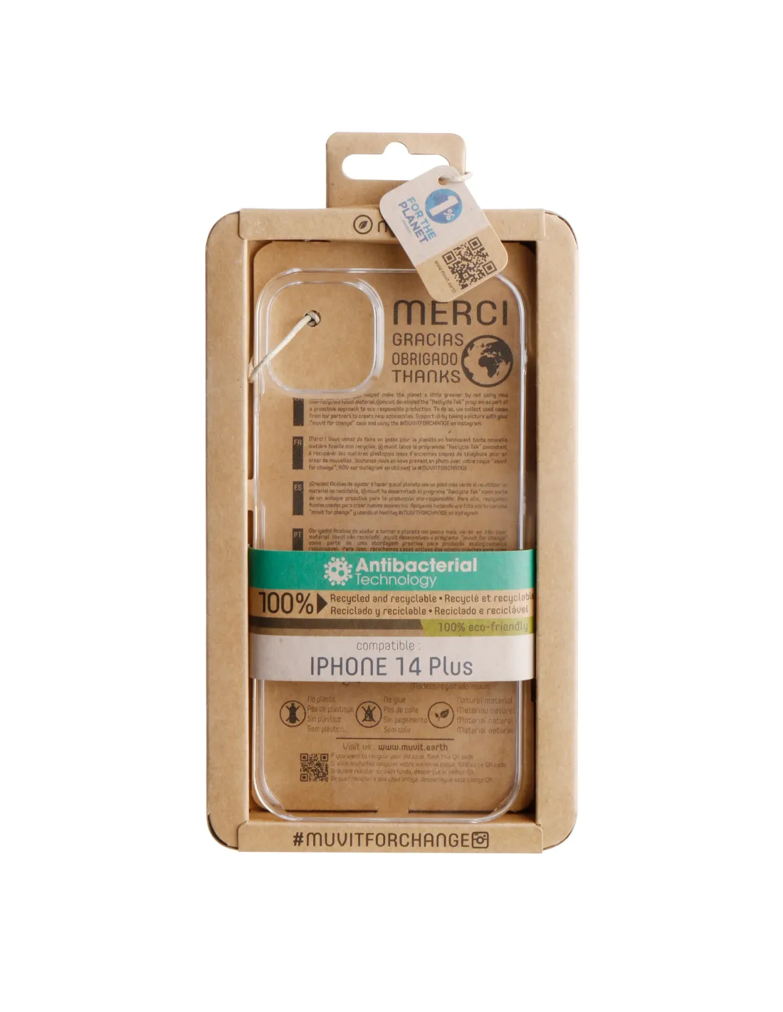 Funda muvit recycletek para apple iphone 14 plus transparente antibacterias