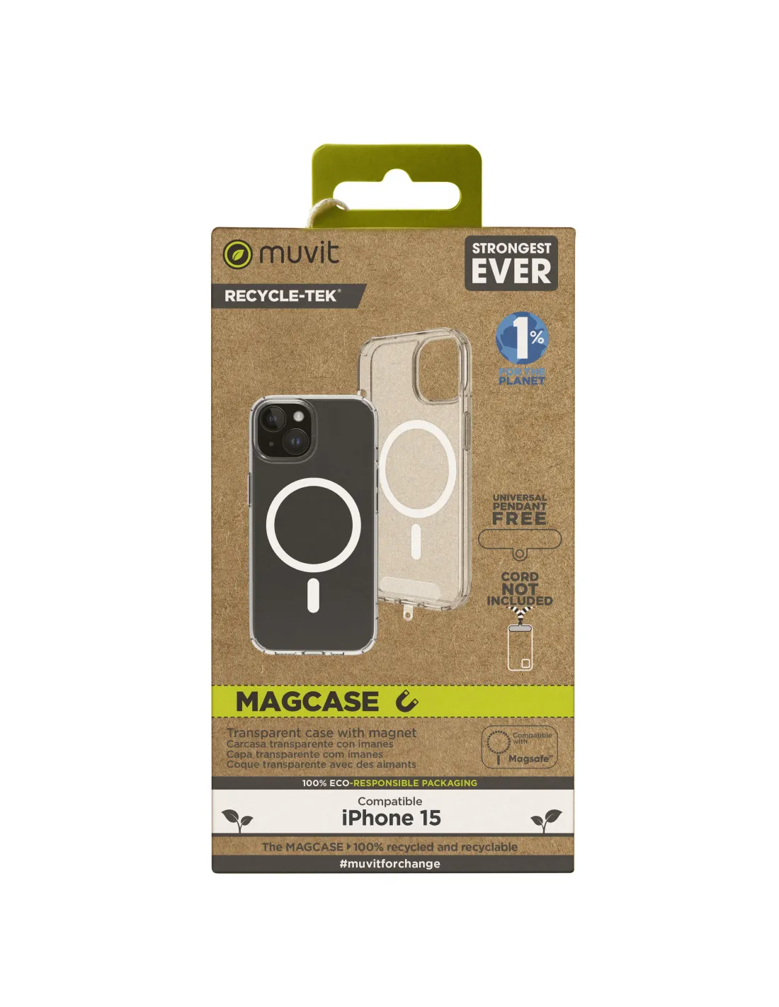 Funda muvit recycletek magsafe para apple iphone 15 transparente